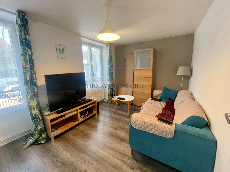 Appartement de type 2 pièces au premier étage, composé d'une entrée, salon, cuisine aménagée équipée, une chambre, salle de douche avec wc.