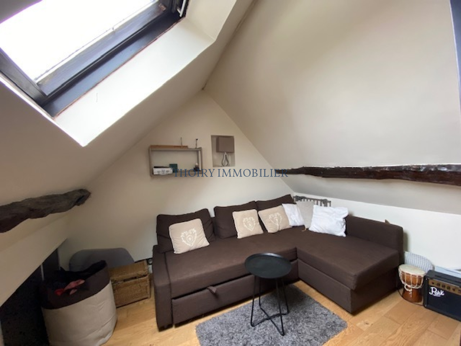Au 1er étage: Beau séjour avec cuisine u.s aménagée et équipée.
