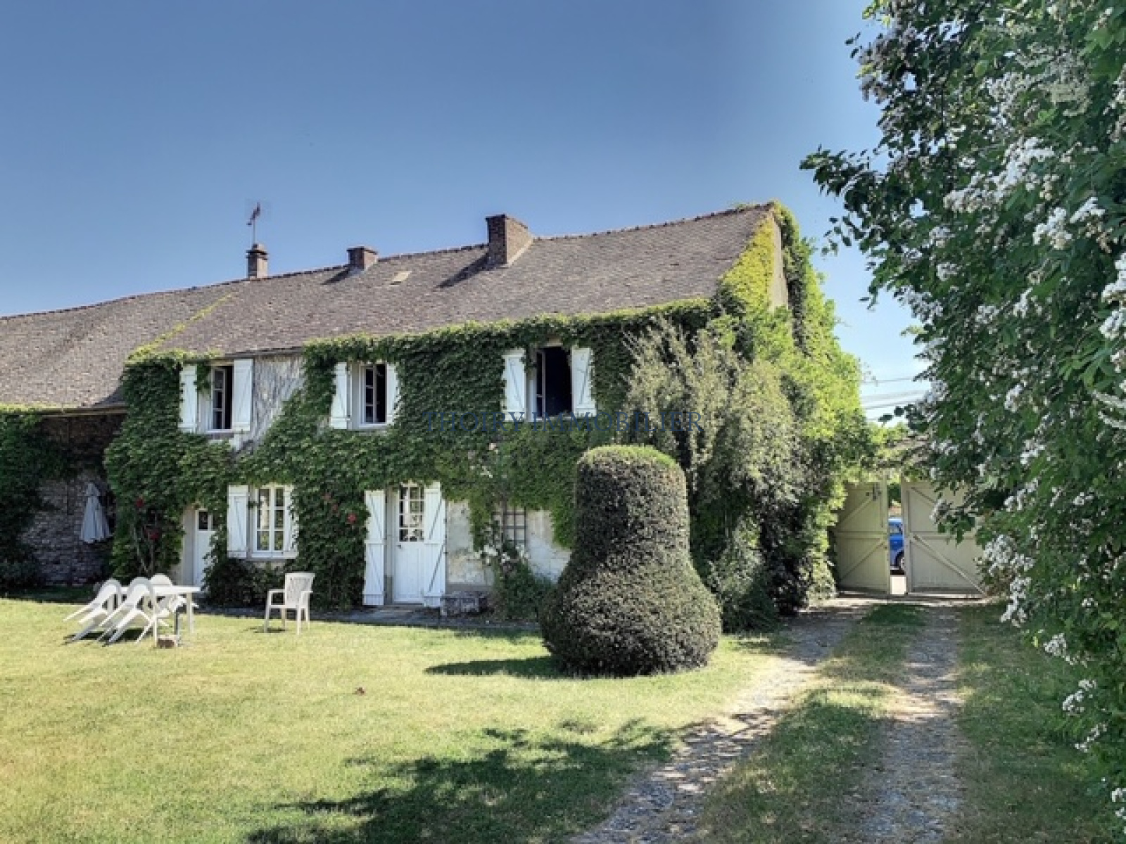 - A l'étage : palier, trois chambres, cuisine, salle de bains avec wc.