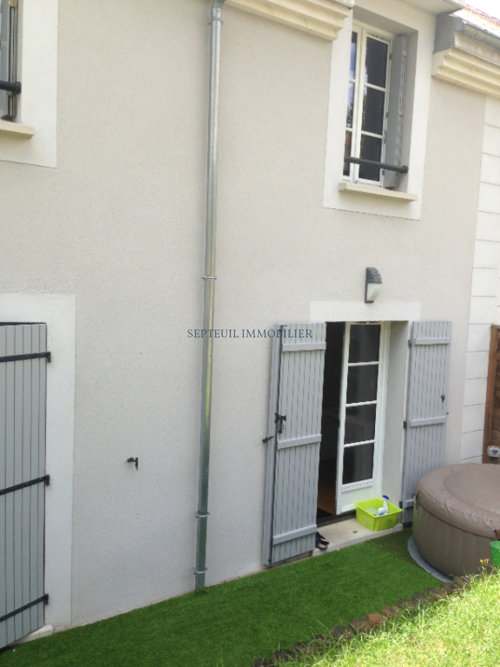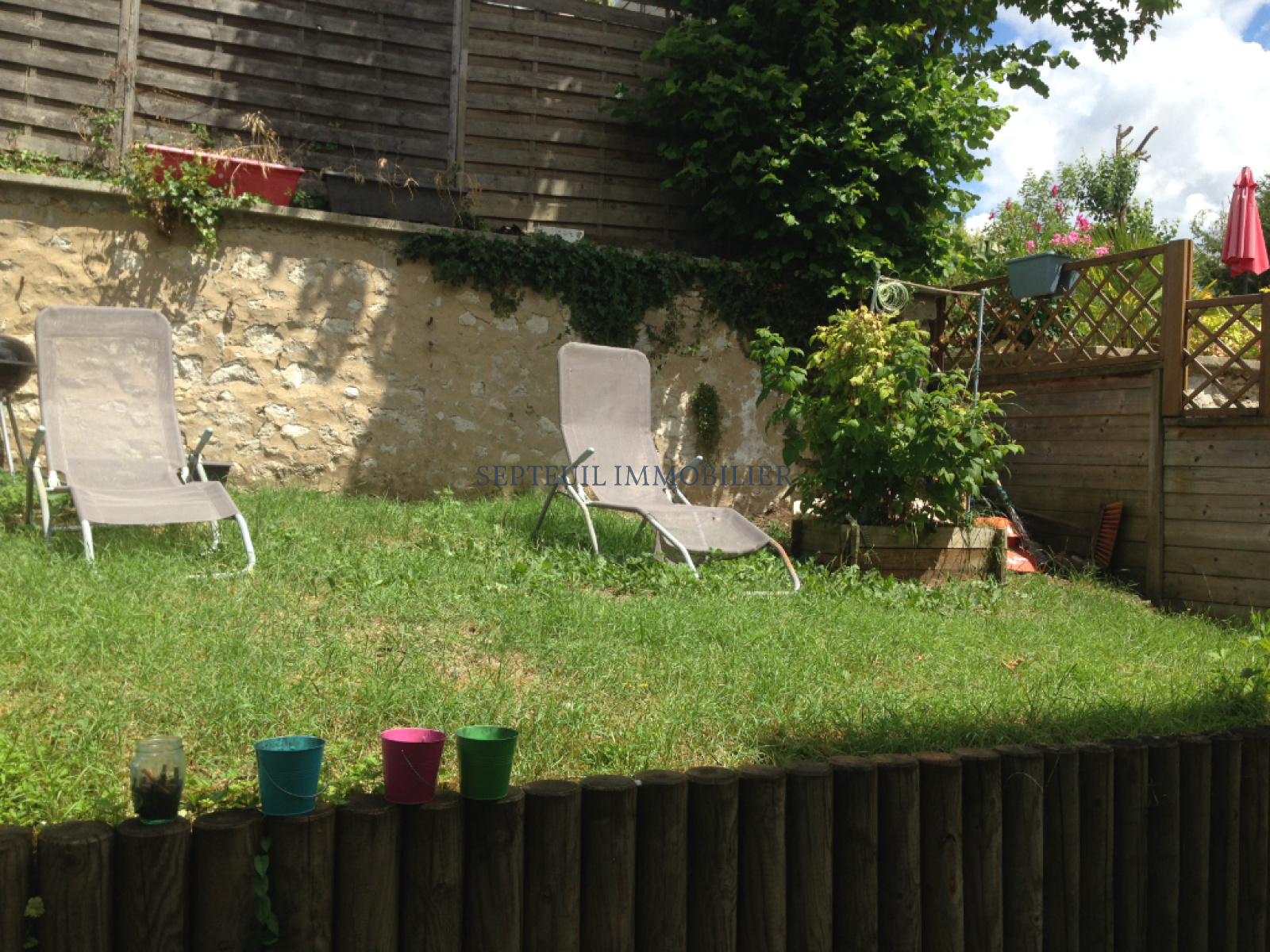 Jolie terrasse en bois et jardin clos.
