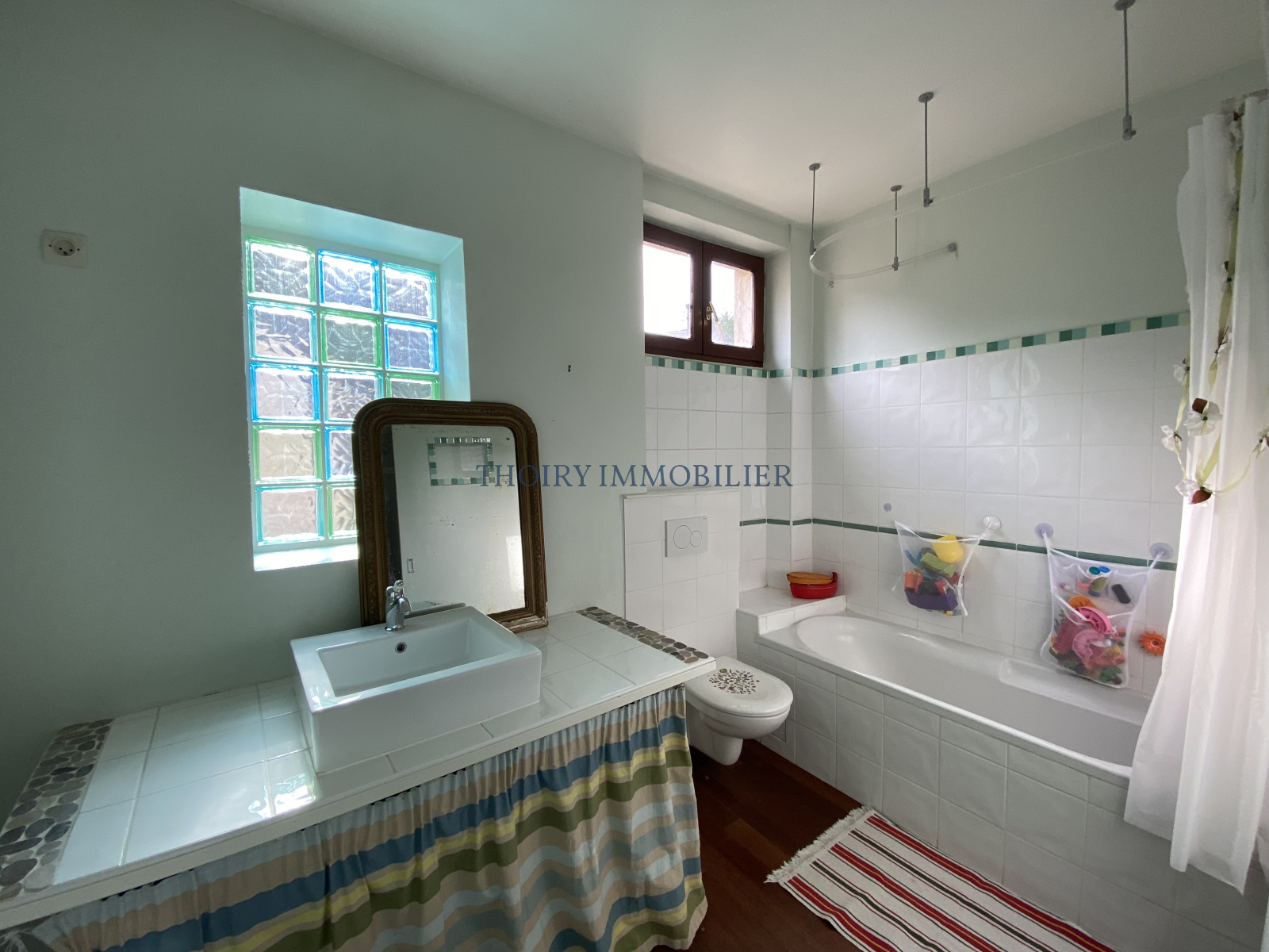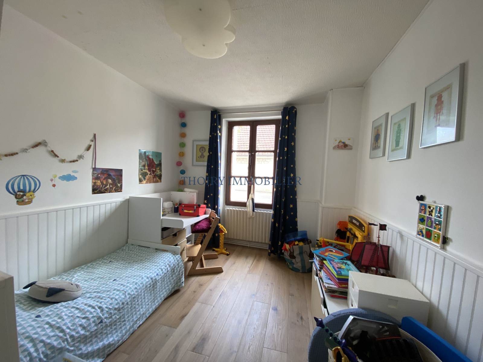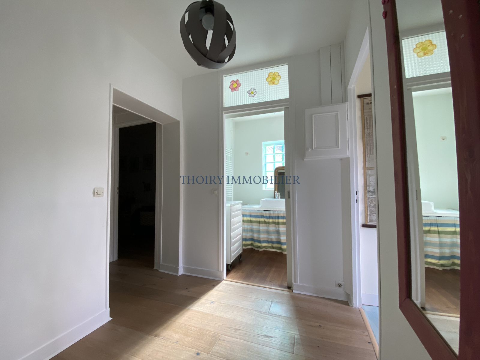 Au 1er étage : un palier distribuant 3 chambres et une salle de bains avec wc.