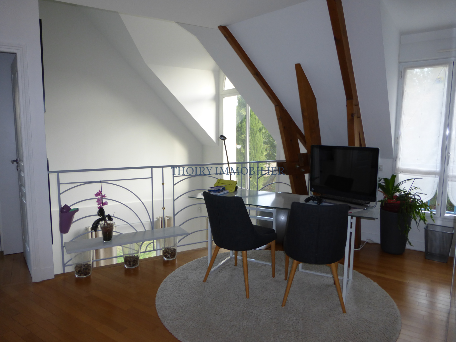 A l'étage : un espace bureau en mezzanine desservant 4 chambres avec placards, dont une suite parentale avec sa salle de douche, des toilettes et une salle de bains avec douche.