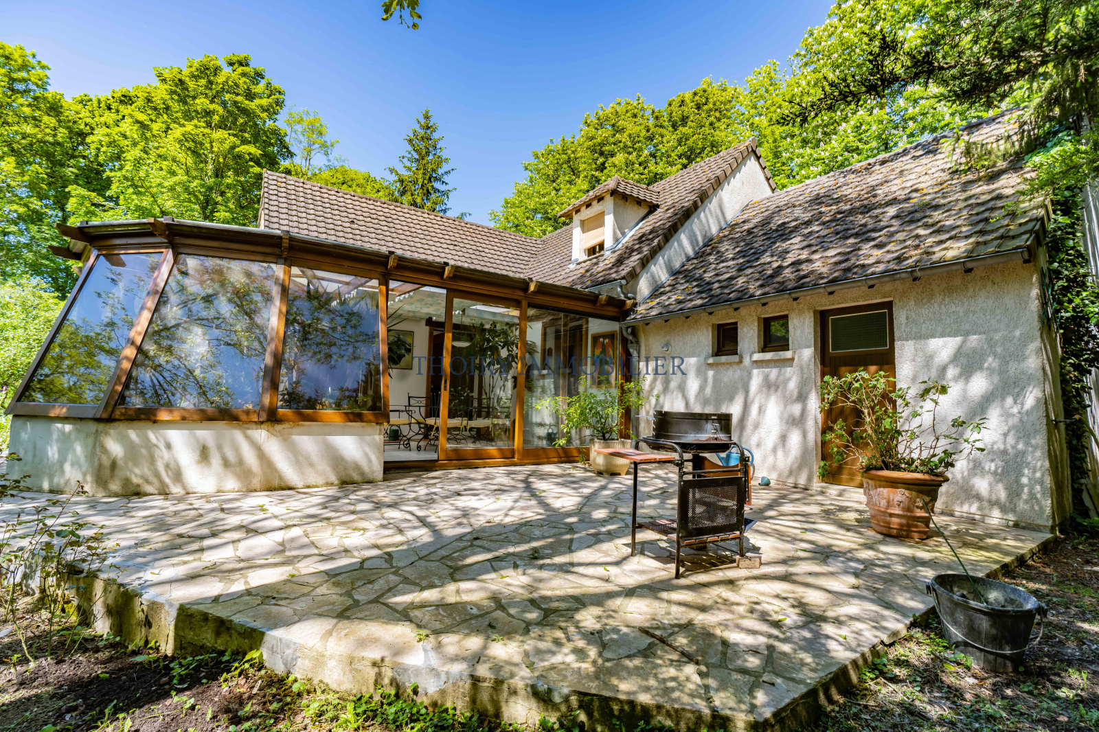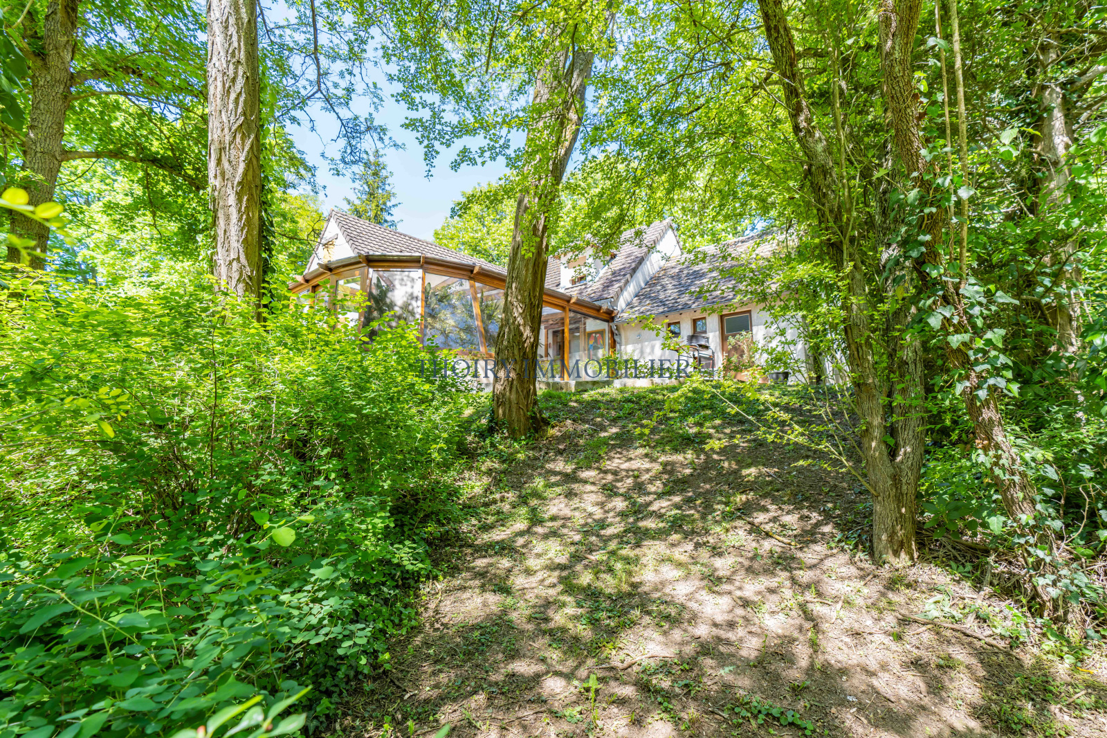 Maison traditionnelle individuelle sur 1 900 m² de terrain arboré, comprenant :