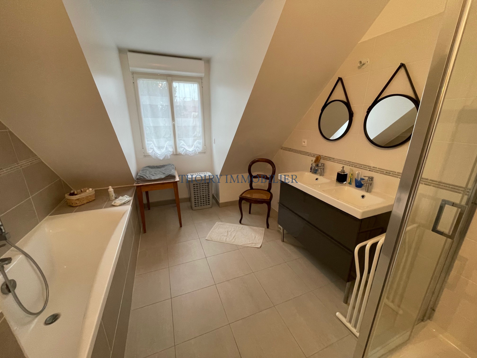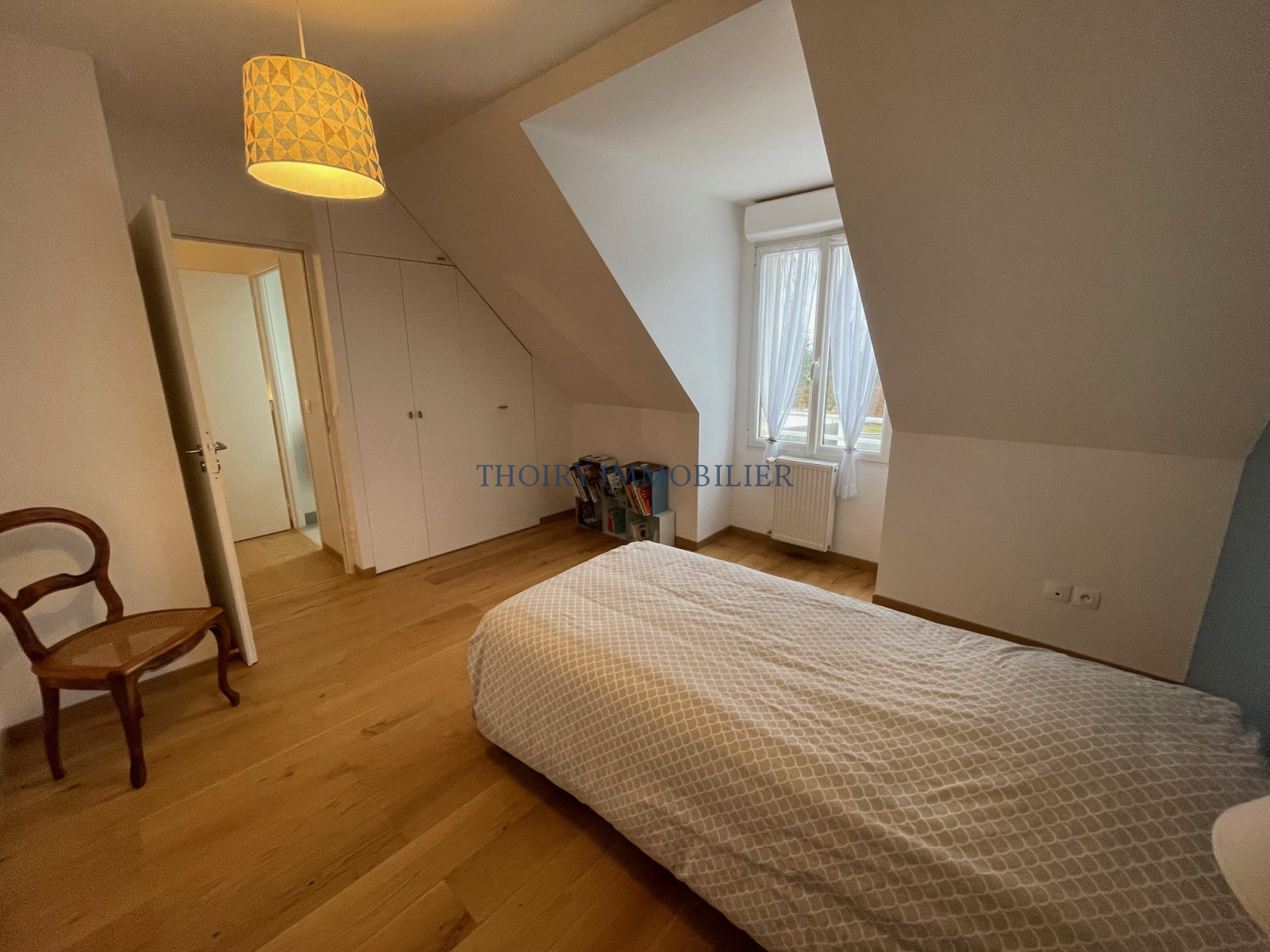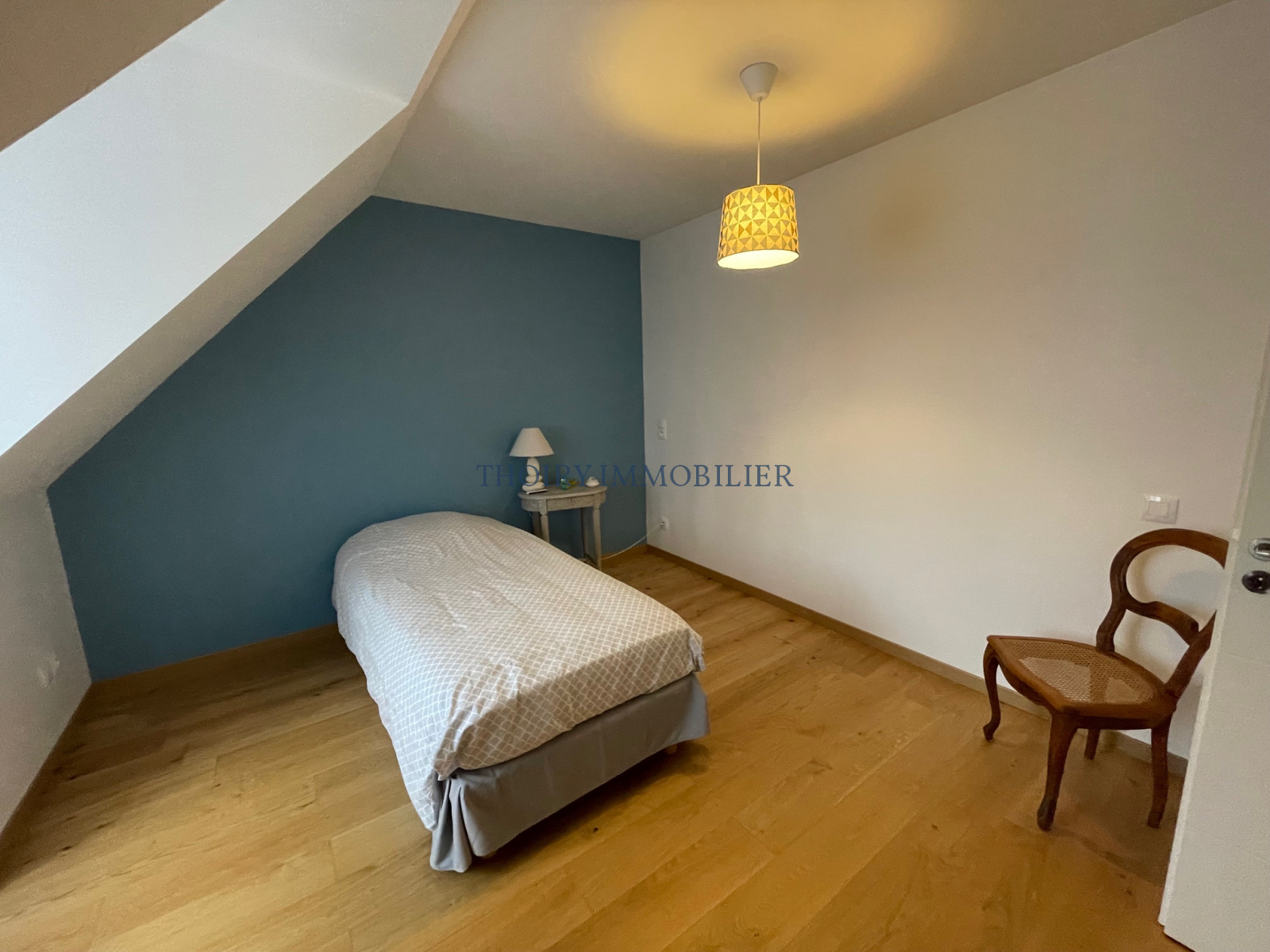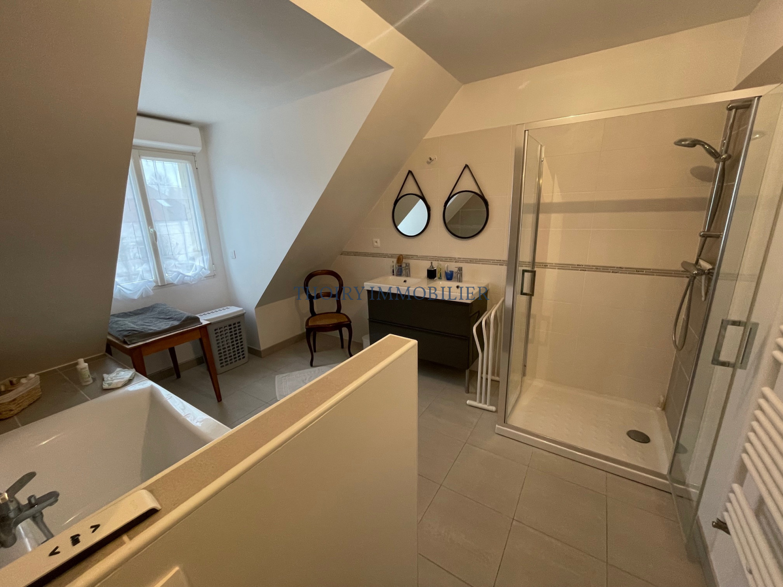- A l'étage palier, trois belles chambres (placards), salle de bains avec douche, wc, une pièce lingerie (possible salle de bains).