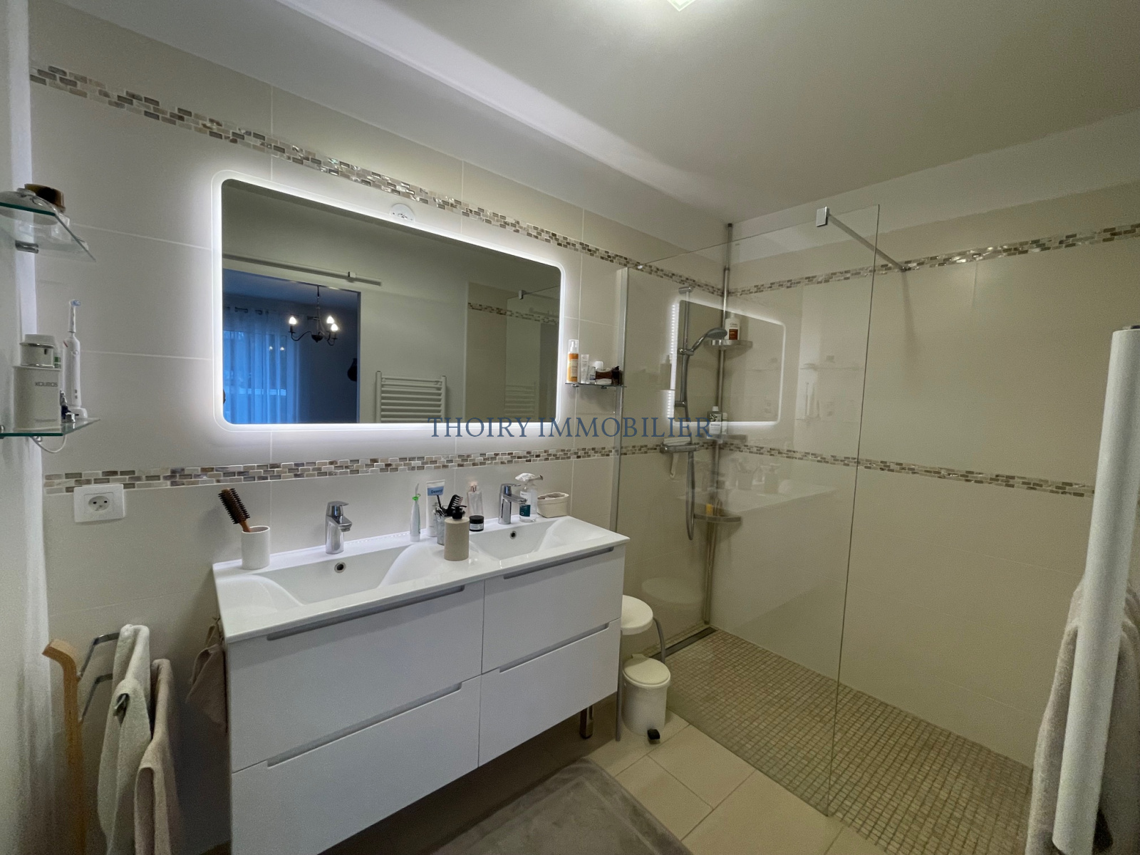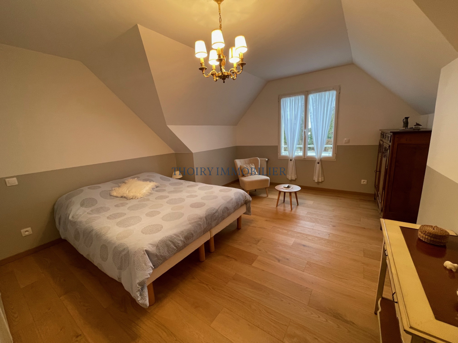 - Au rez-de-chaussée entrée, séjour double, cuisine aménagée équipée, cellier, une chambre avec salle de douche wc et nombreux rangements.