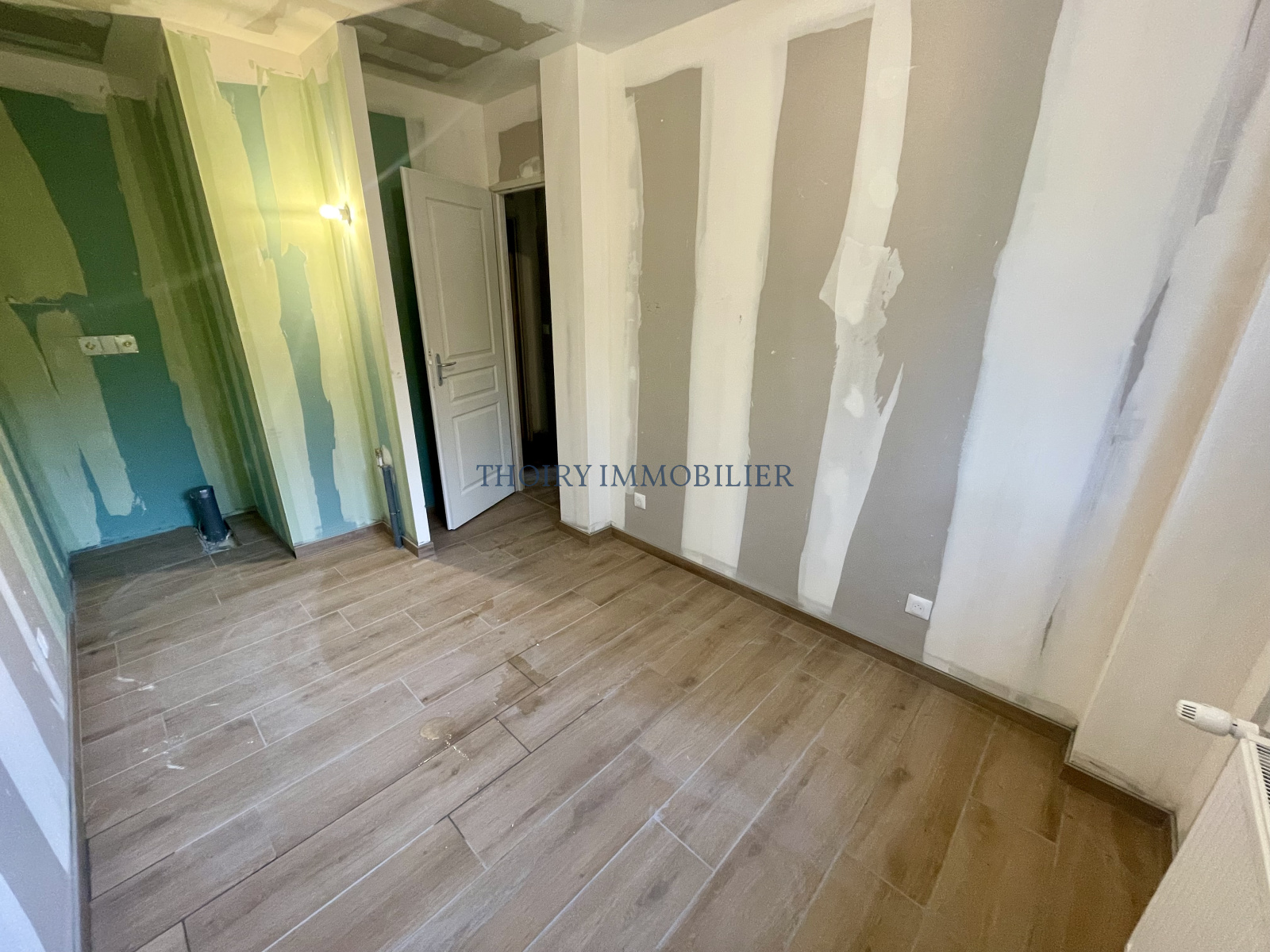 - Au rez-de-chaussée entrée sur séjour avec cuisine aménagée, chambre, salle de douche, wc.