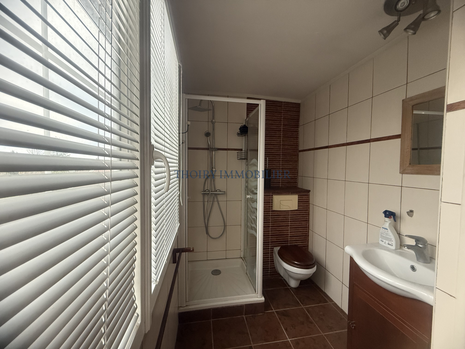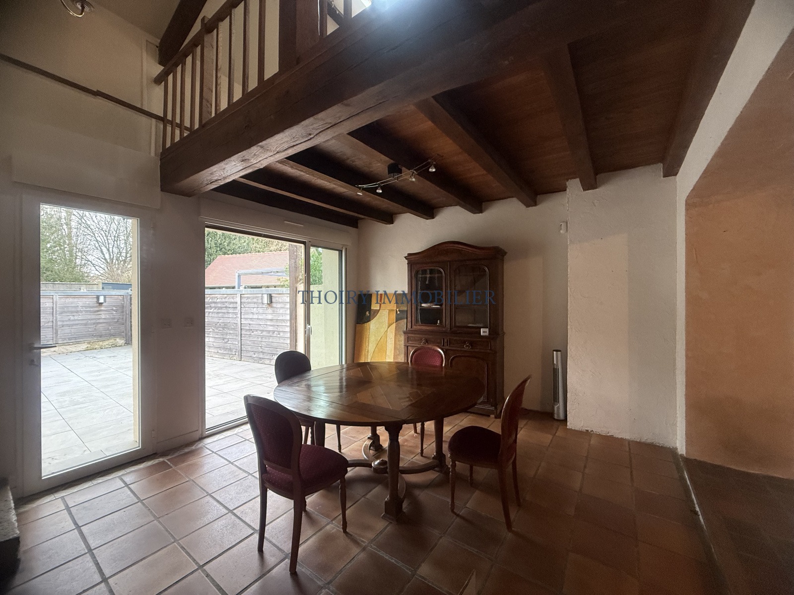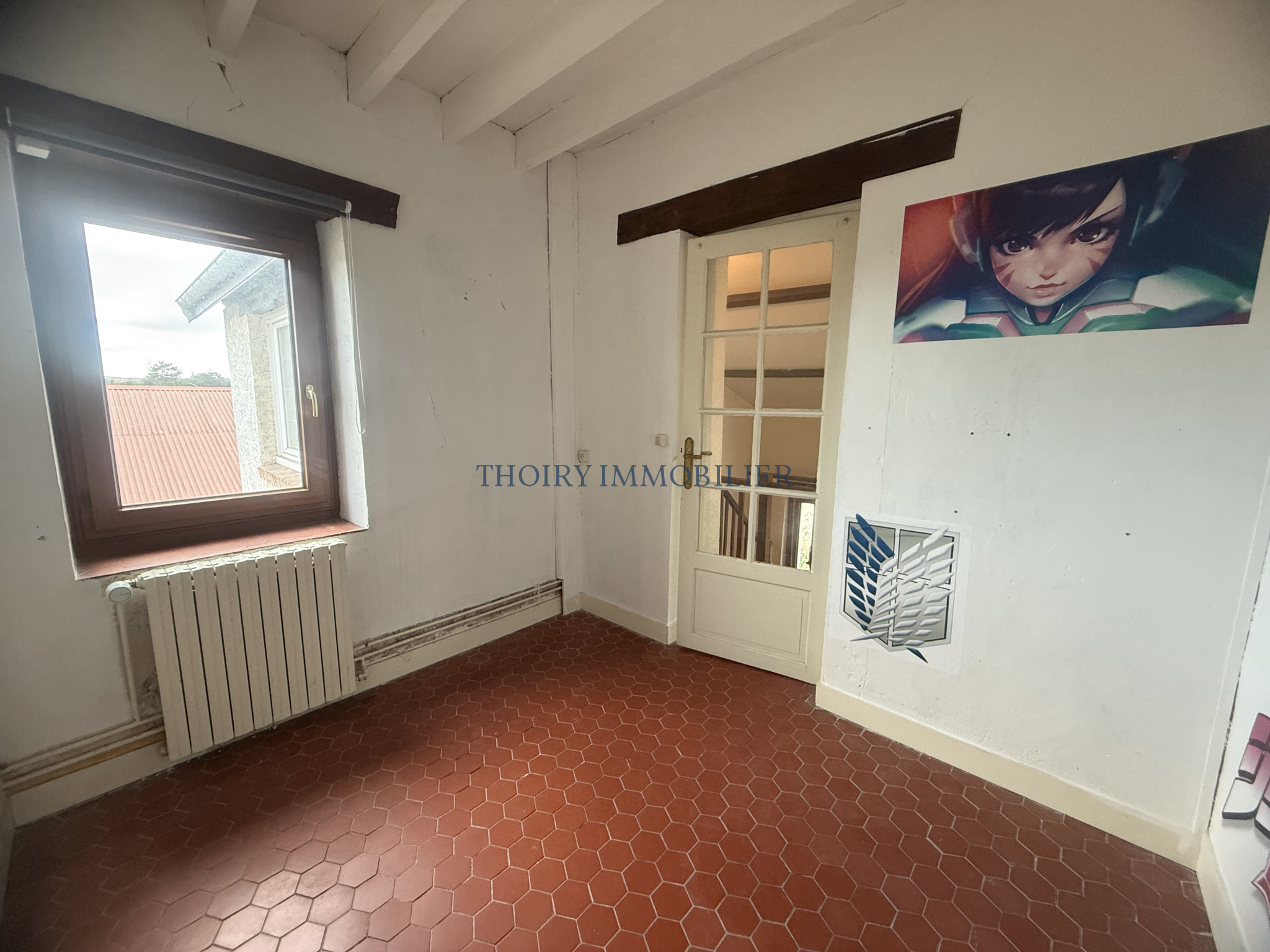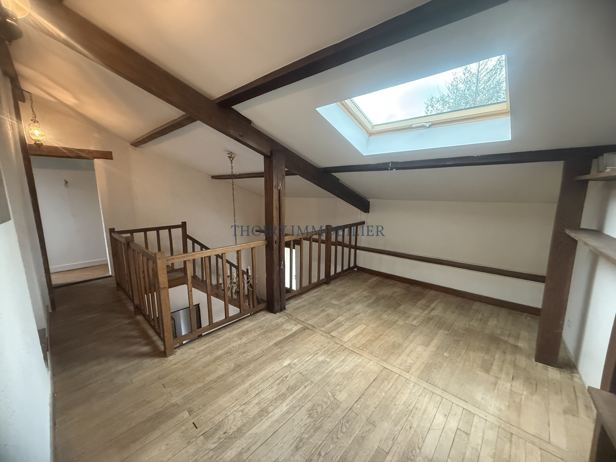 A l'étage : un palier mezzanine desservant 3 chambres dont une petite chambre bureau, salle de douche avec wc.