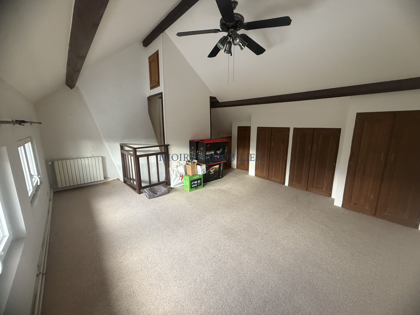 Sous-combles : une chambre avec des rangements.