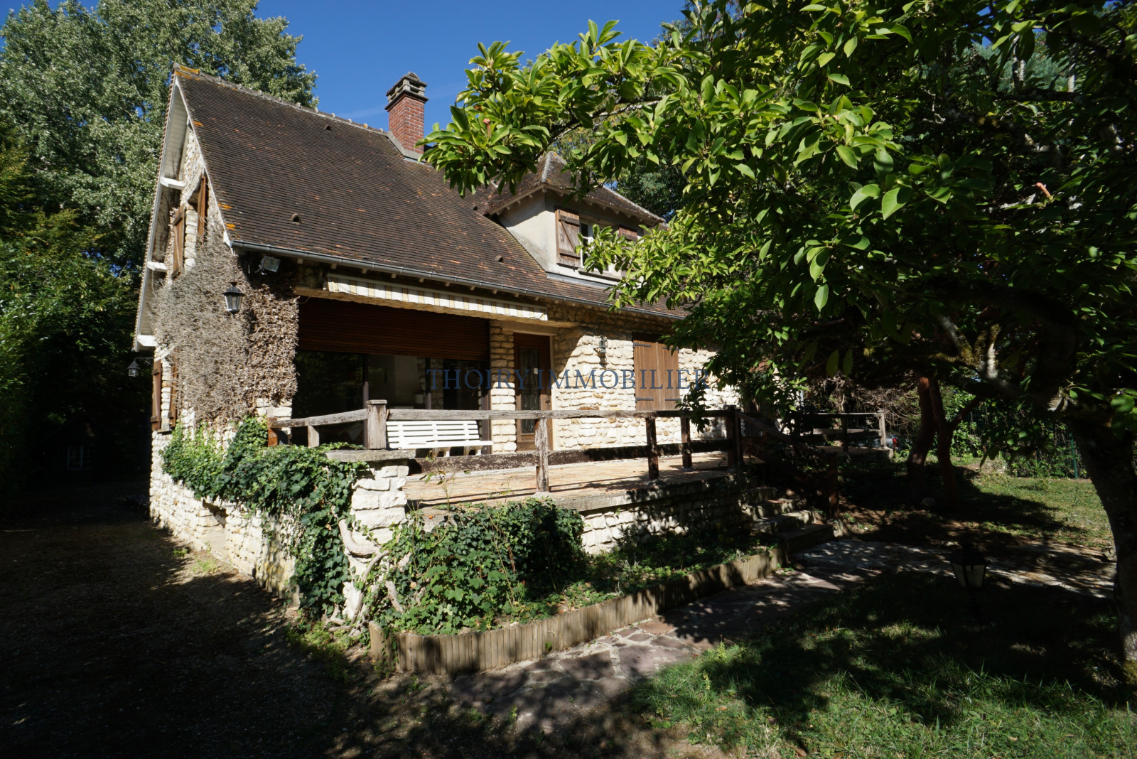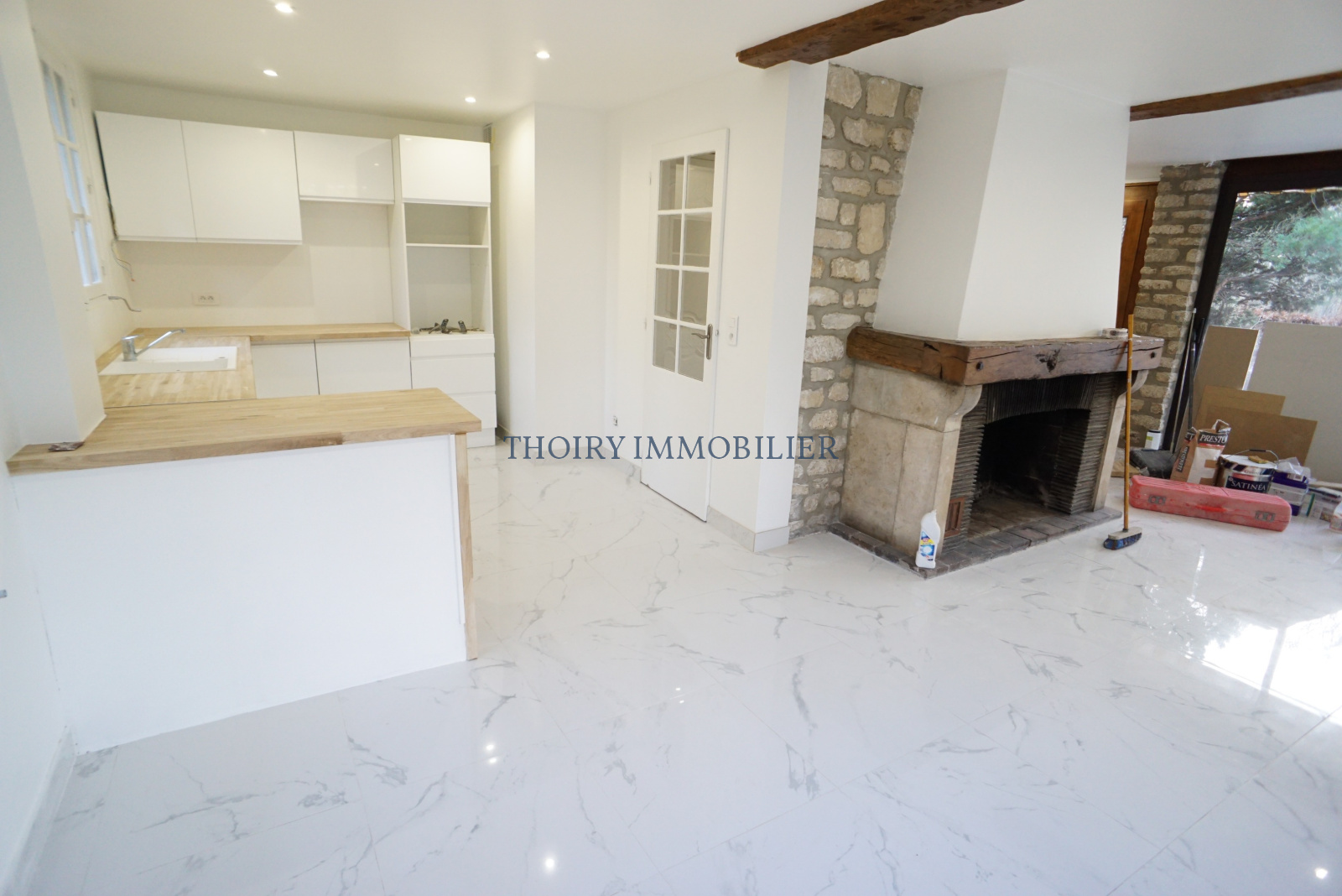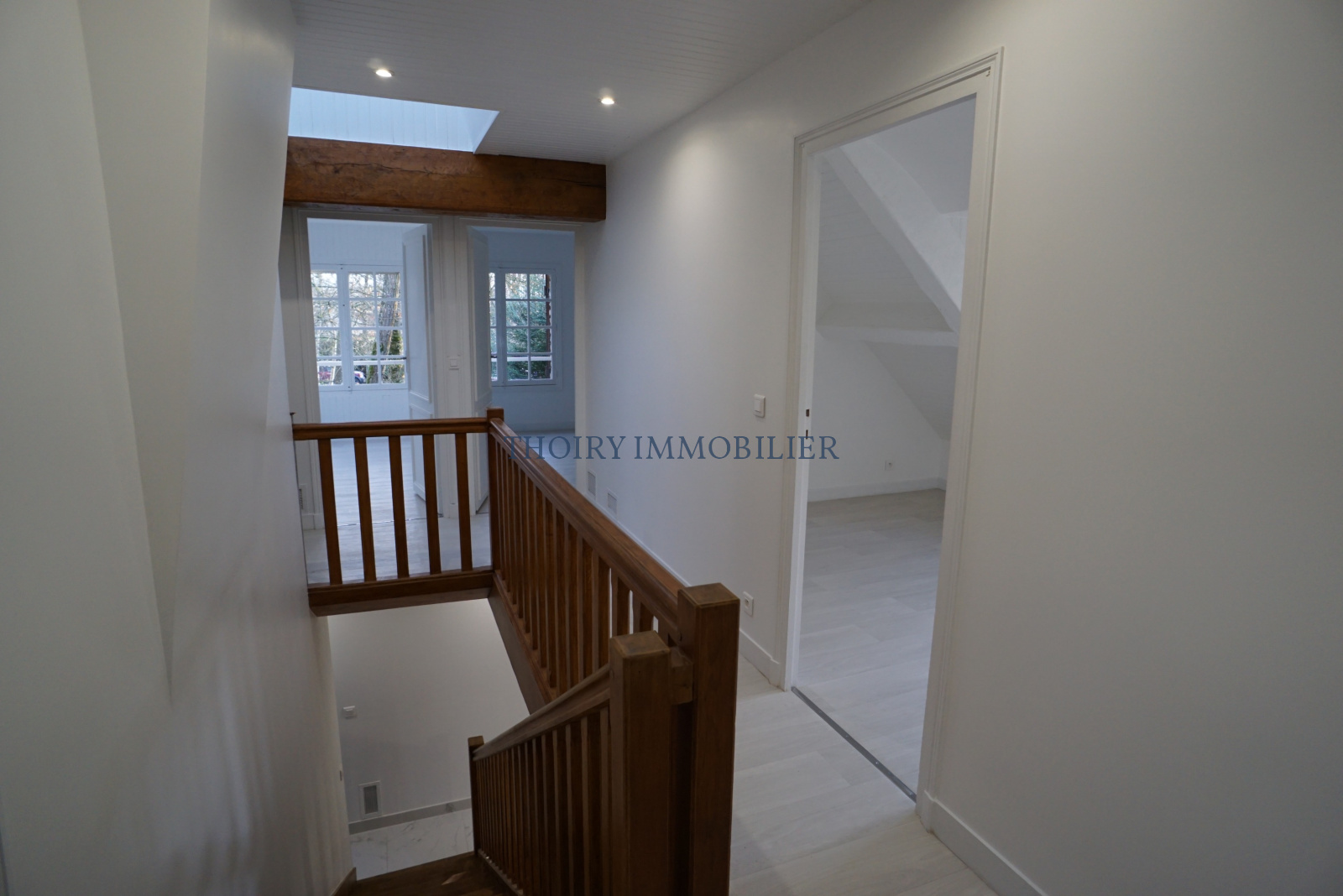 - Au rez-de-chaussée entrée sur séjour avec cheminée, cuisine aménagée, salle à manger, une chambre avec dressing, salle de bains, wc.
