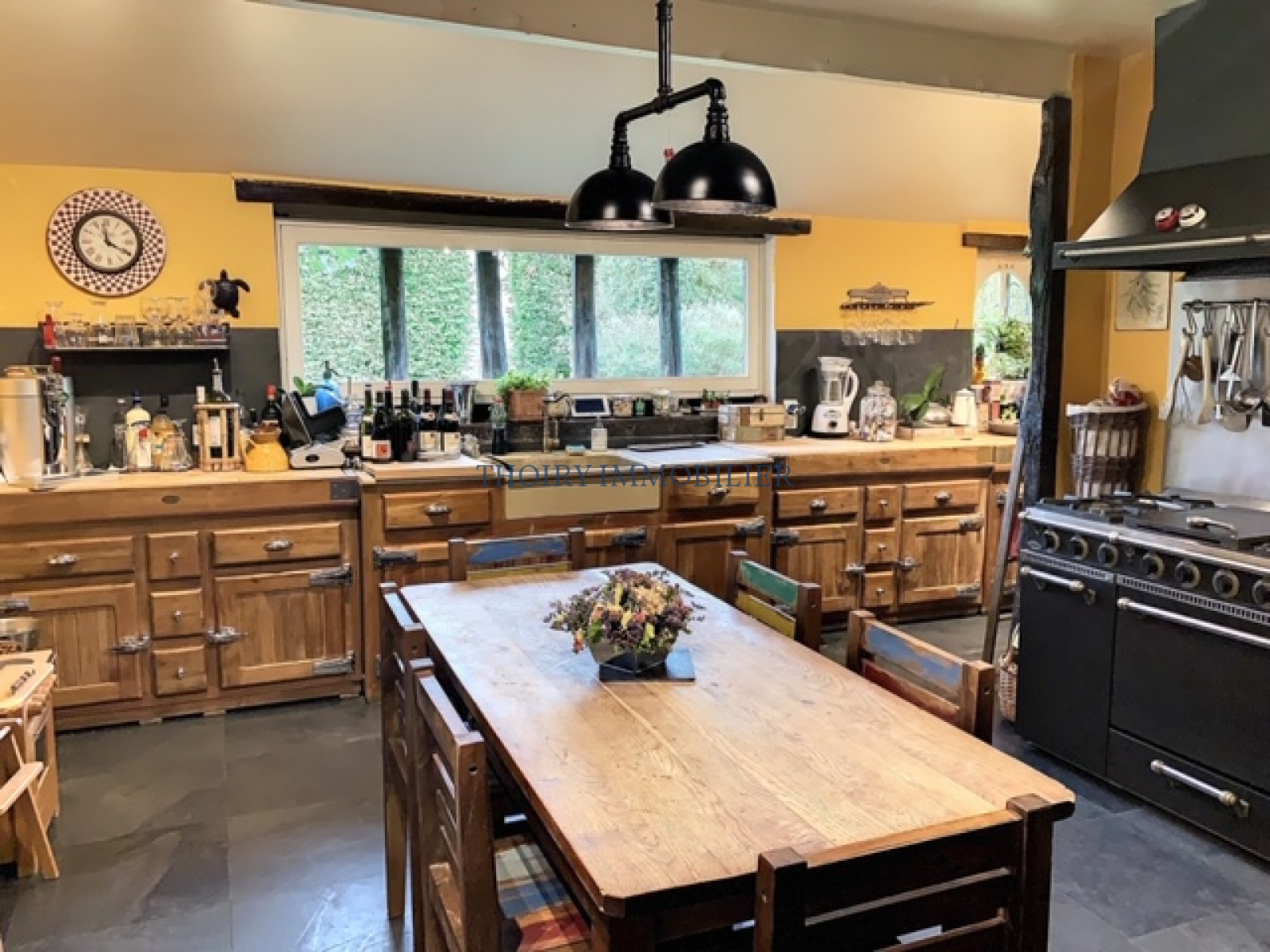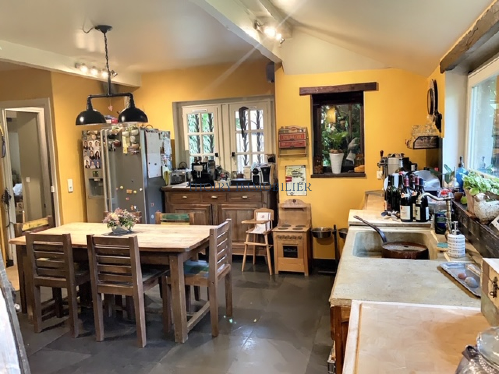 - Au rez-de-chaussée entrée, une chambre avec salle de douche et wc, séjour triple avec cheminée, cuisine aménagée, dégagement, wc, buanderie.