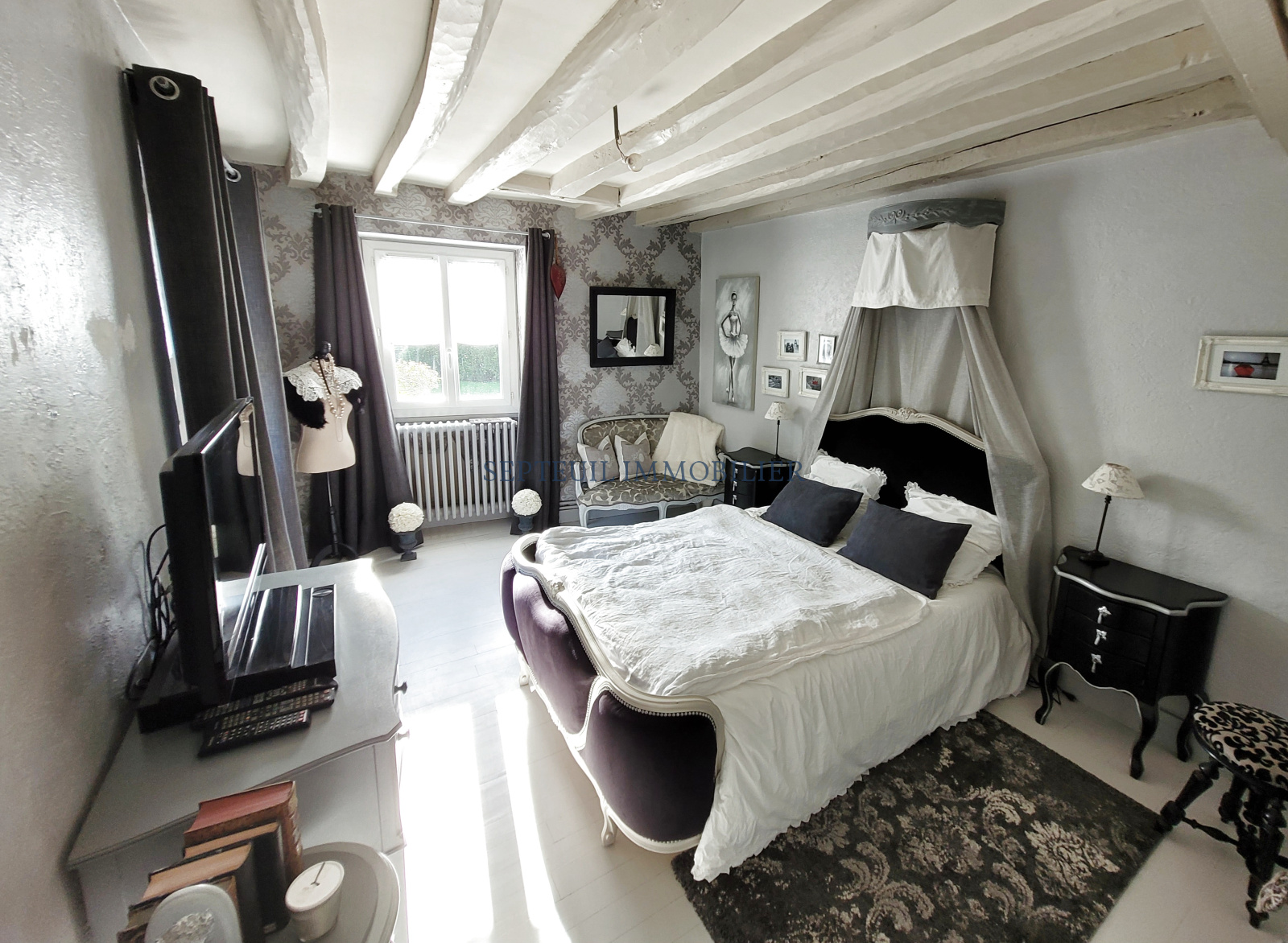 A l'étage : grande suite parentale (salle douche à rénover), boudoir avec dressing, 3 chambres dont une avec point d'eau, salle de bains et toilettes.