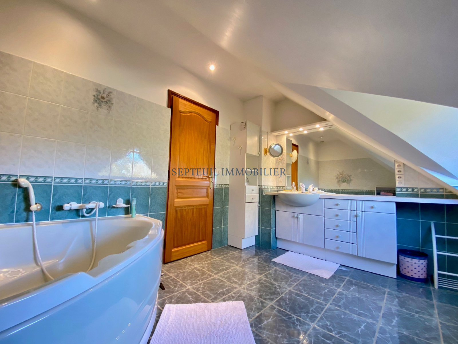 A l'étage: Un palier distribue 4 chambres, une salle de bains, une douche et wc séparés.