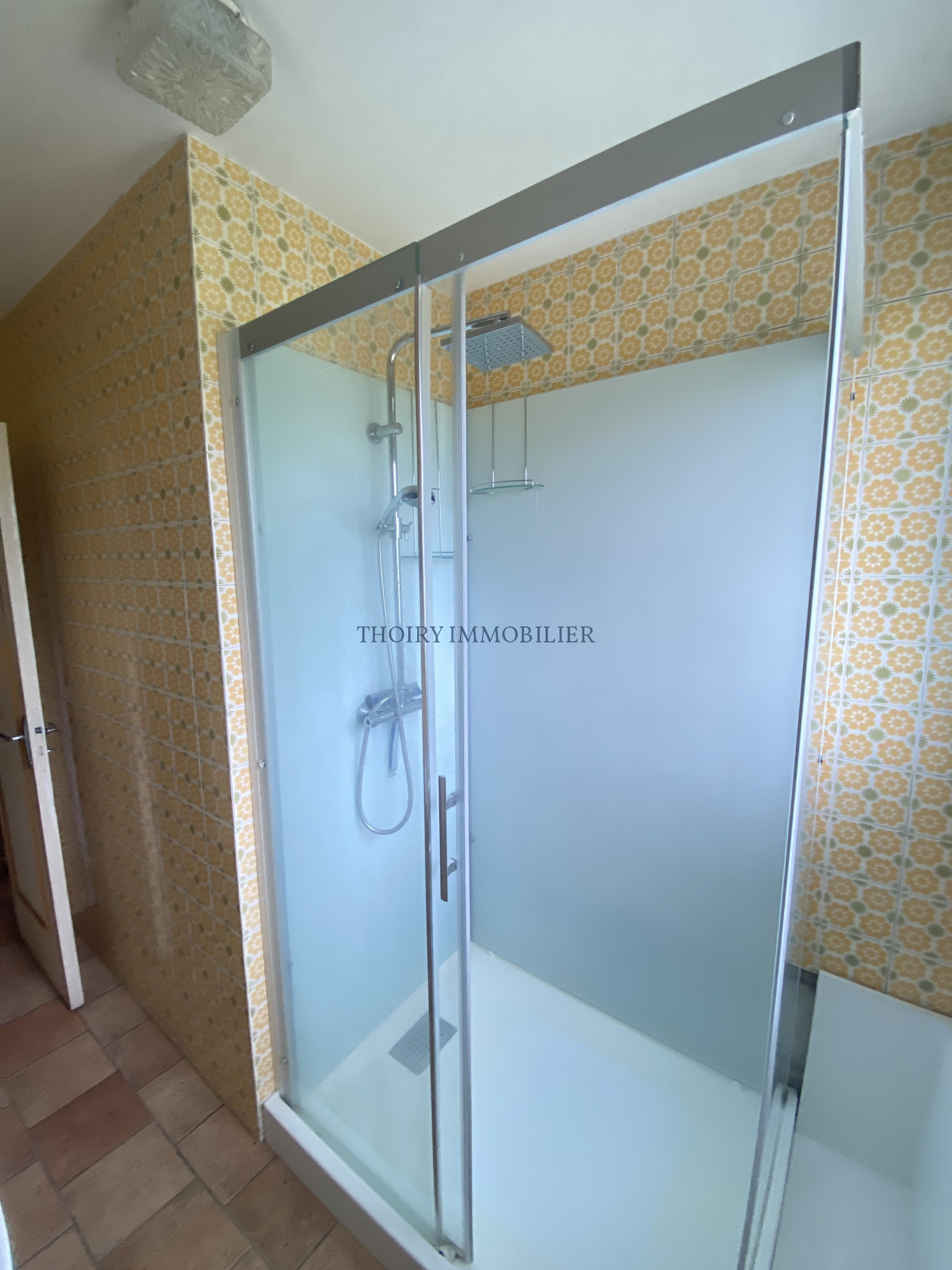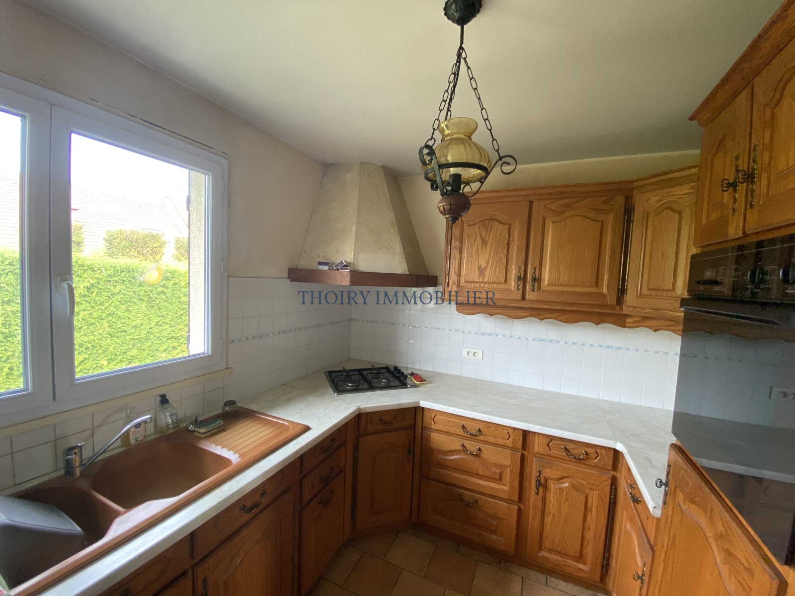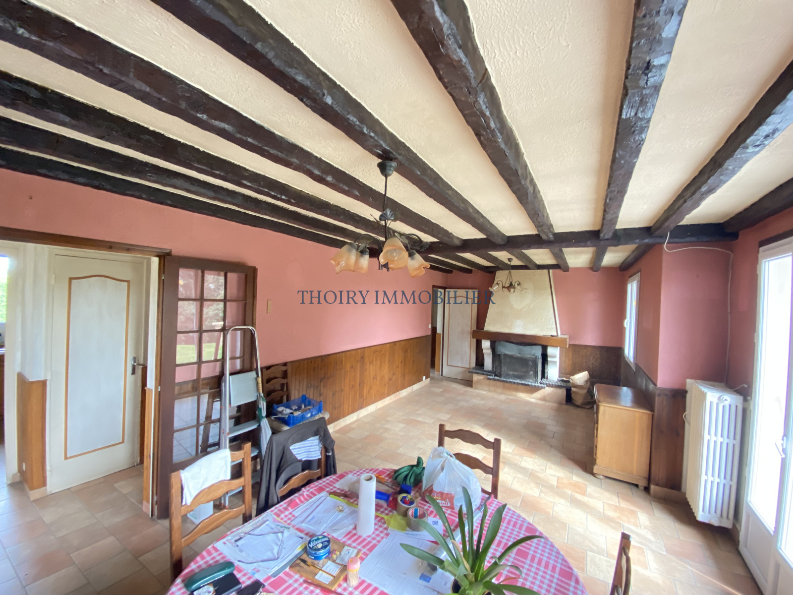 Sas d'entrée, entrée, cuisine aménagée équipée, séjour avec cheminée, 3 chambres, salle de douche, wc.