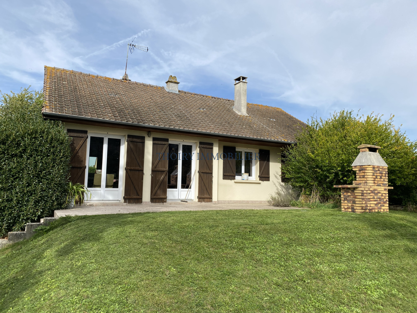 Maison de plain pied élevée sur 951 m² de terrain, offrant :