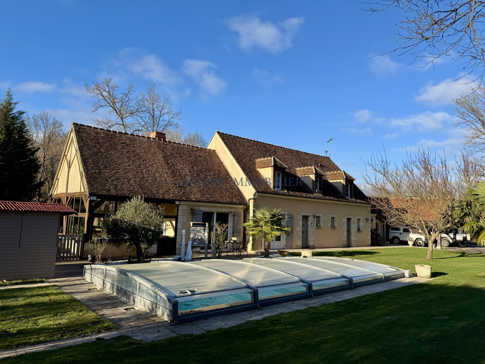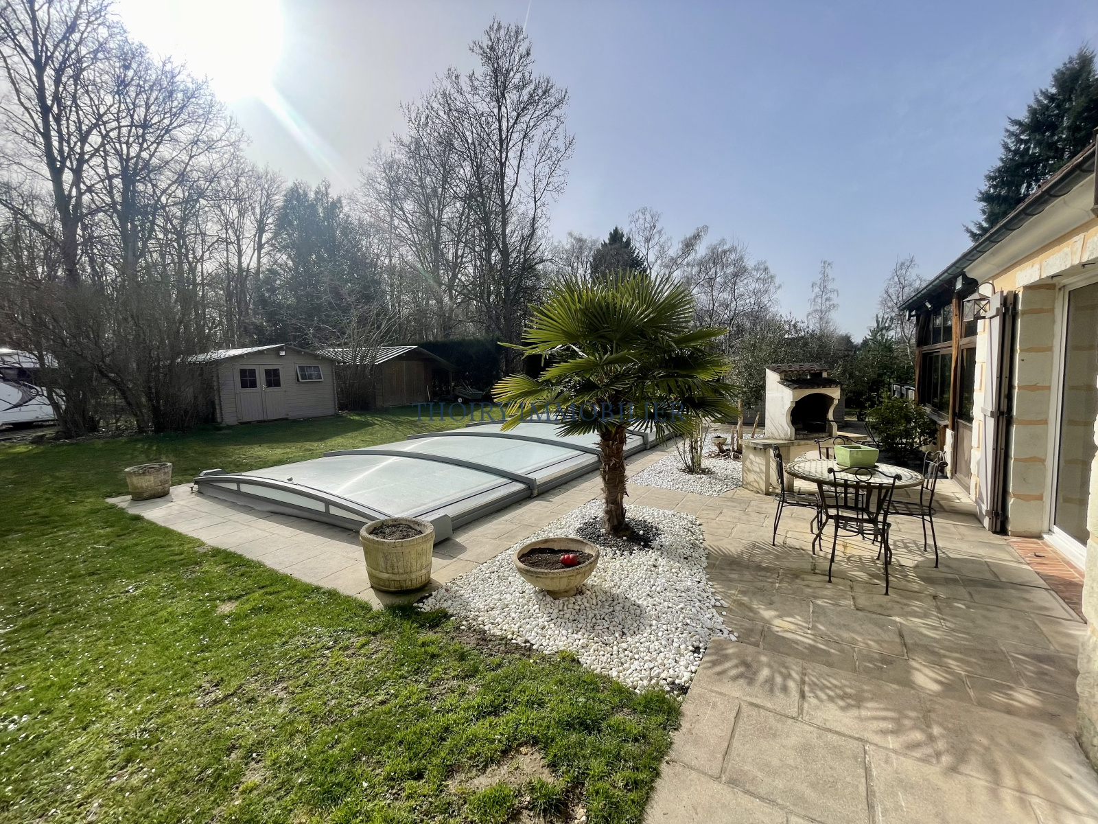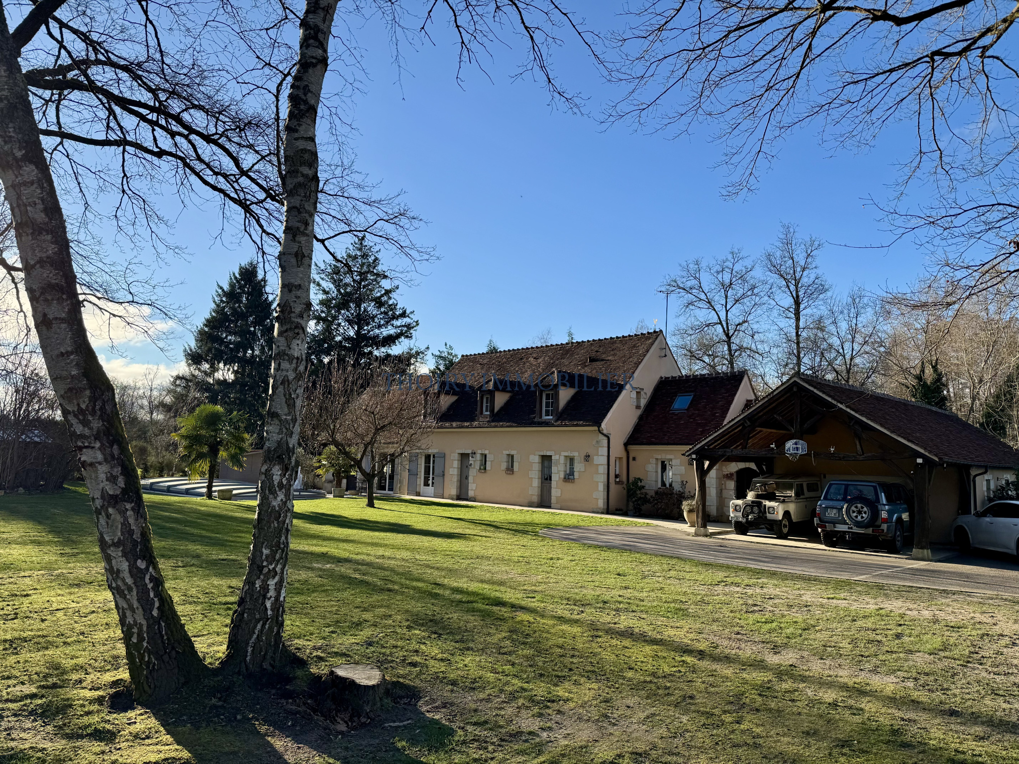 Garage double. 2 charetteries-carports, abris et pool-house, cave à vin.