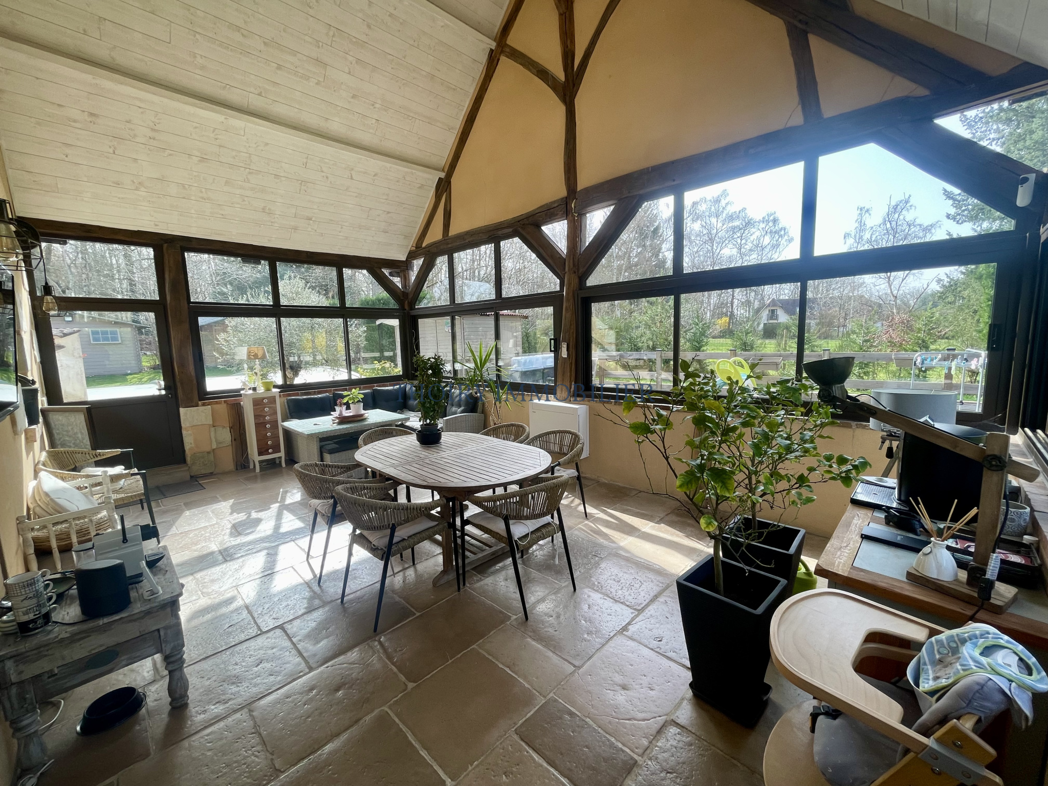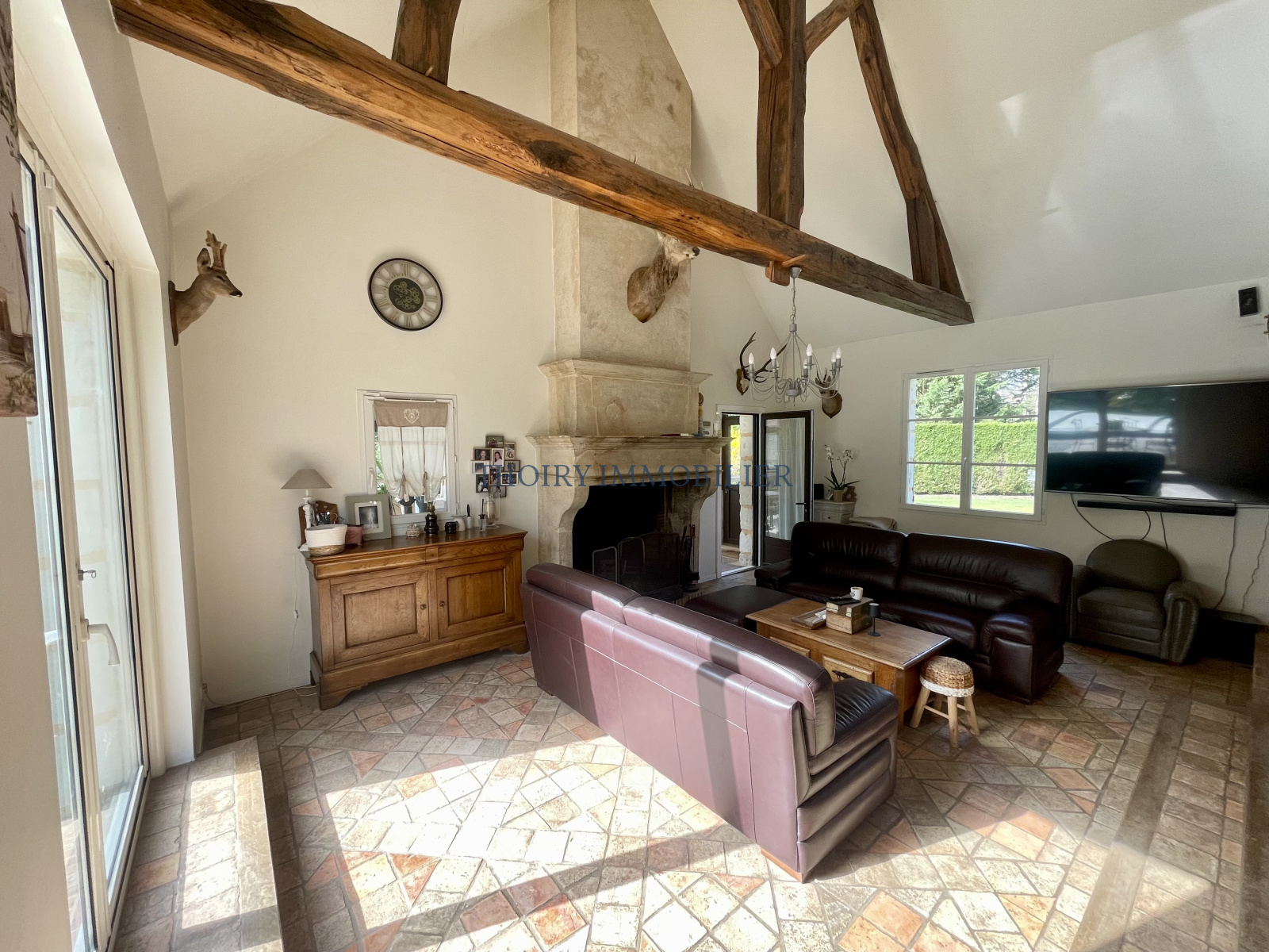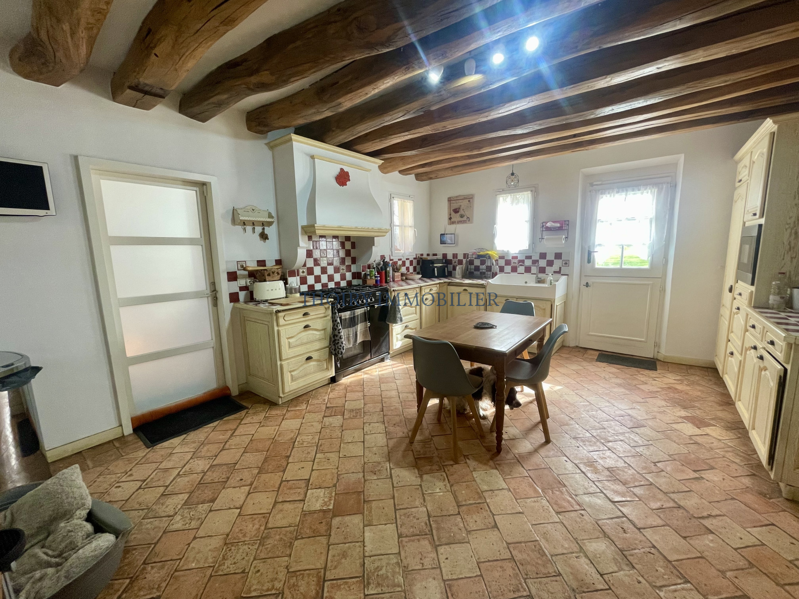 Beau matériaux (tomettes, cheminée en pierre, charpente authentique,..;).