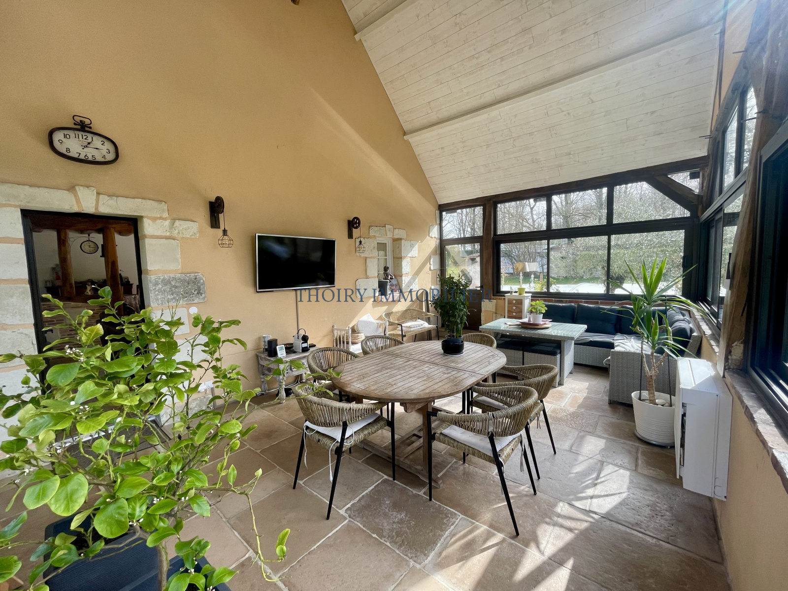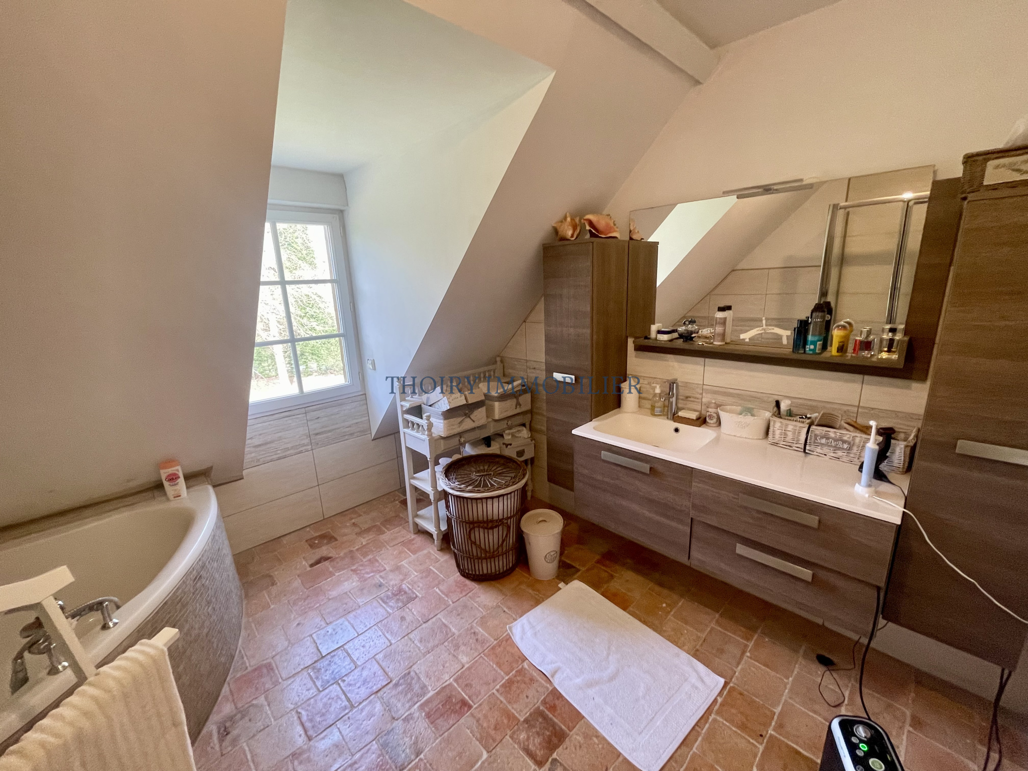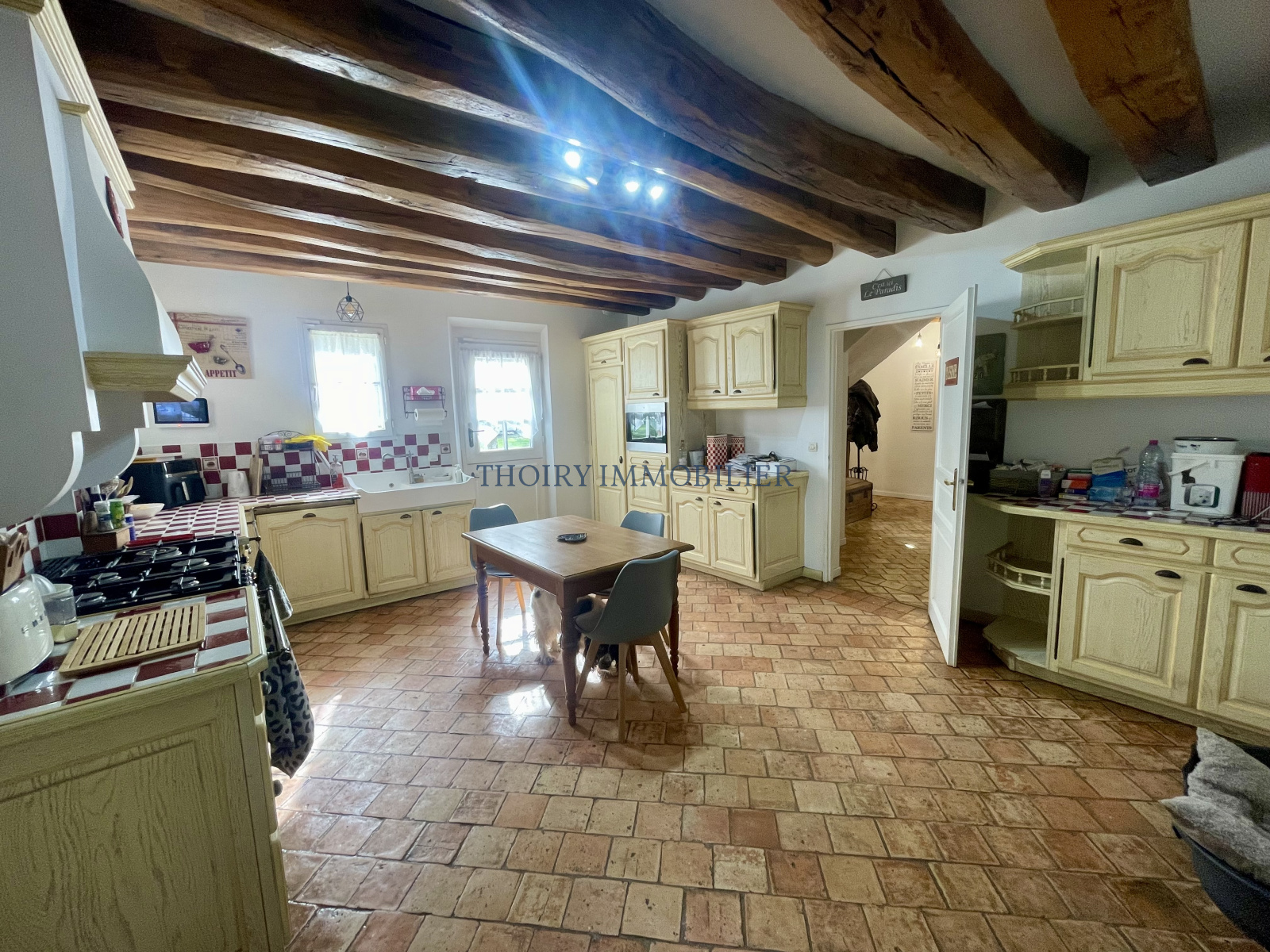Beau matériaux (tomettes, cheminée en pierre, charpente authentique,..;).