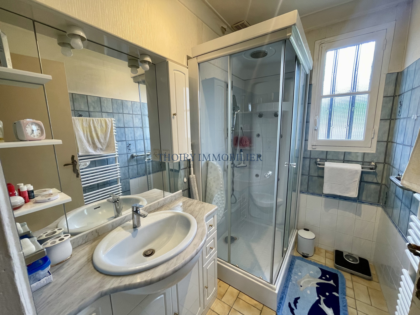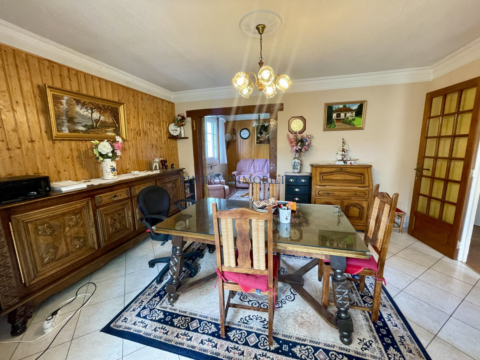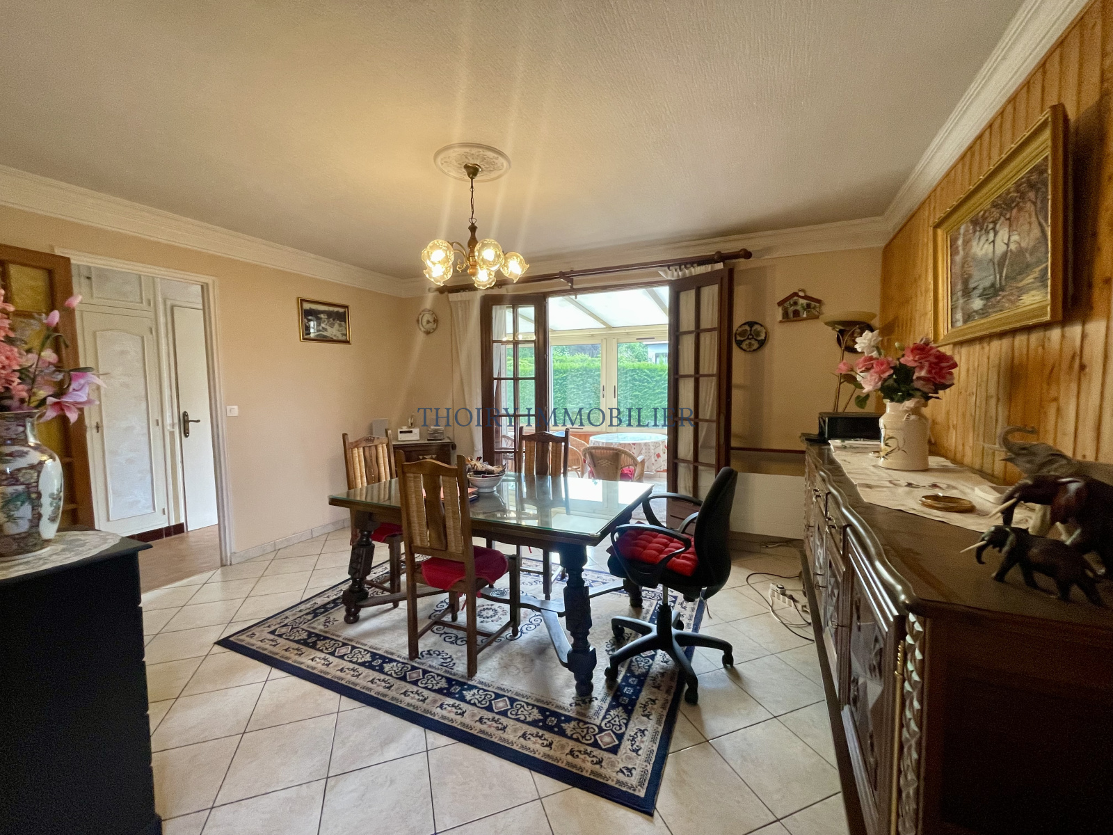 Entrée, séjour avec véranda 39 m², cuisine aménagée, couloir, deux chambres avec placards, salle de douche, wc séparés.
