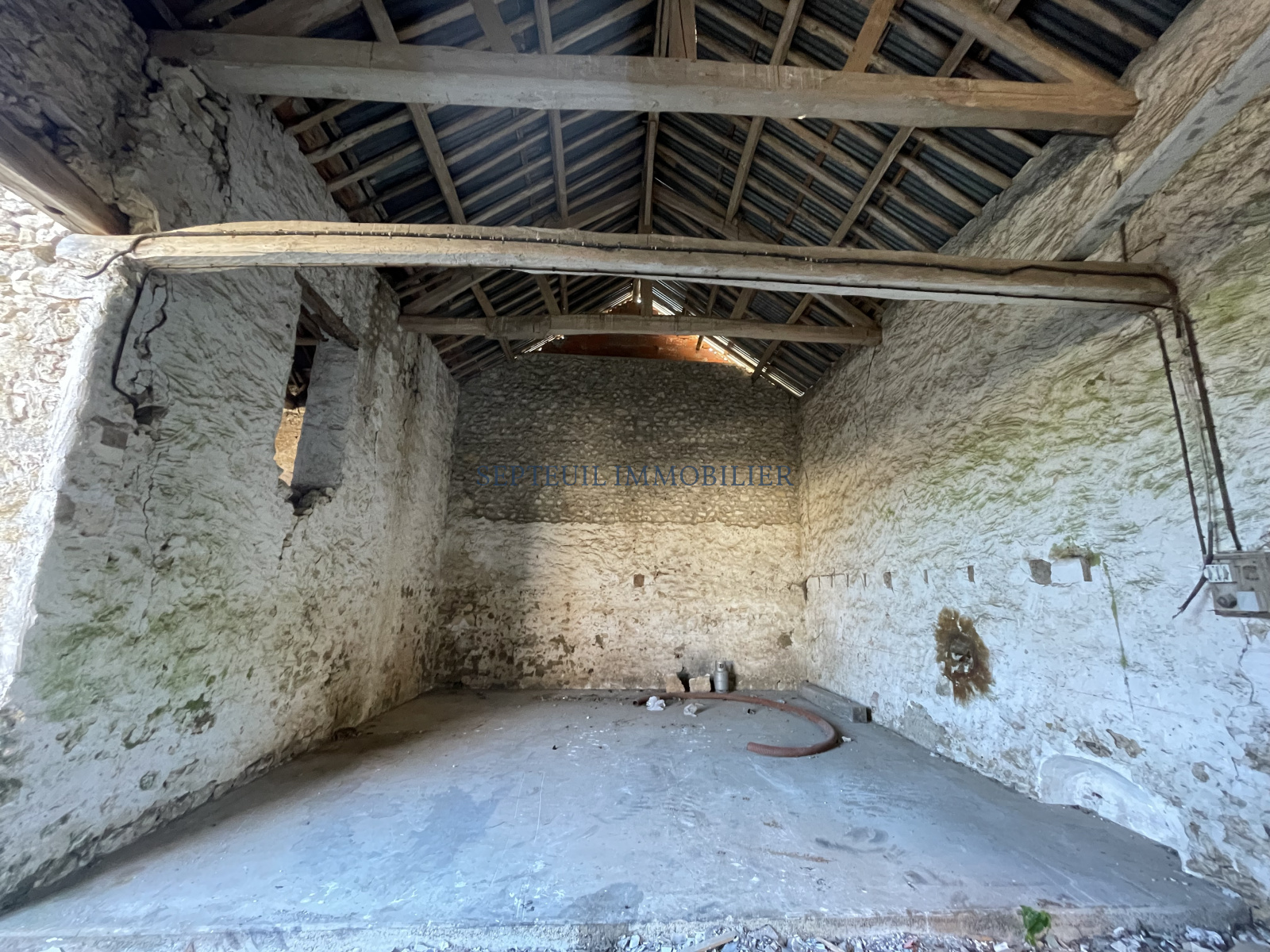 Grange à réhabiliter de 77 m² au sol environ ( soit 150 m² possible ) avec jardin privatif et 2 places de stationnement.