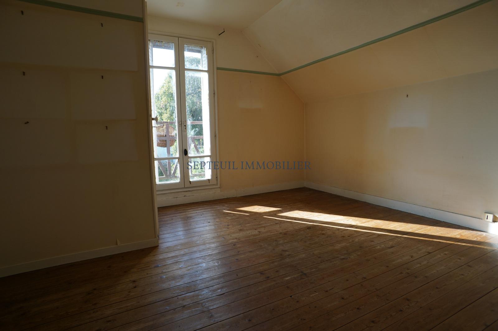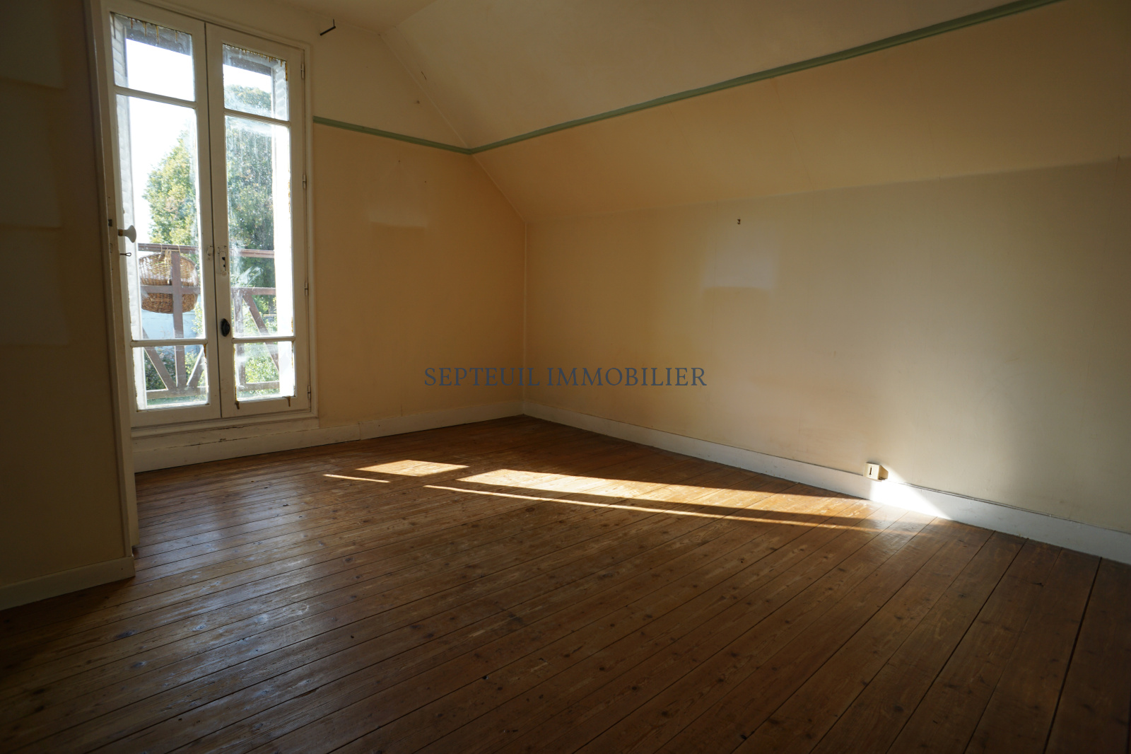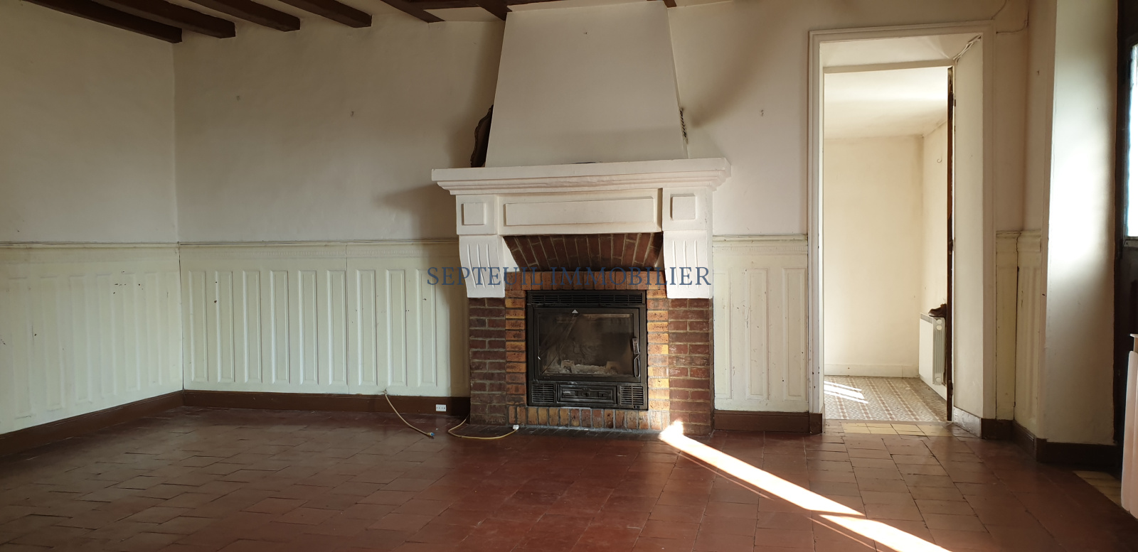 Entrée, séjour avec cheminée, cuisine séparée, une chambre, bureau, salle de bains et wc.