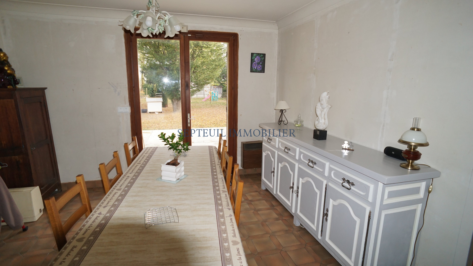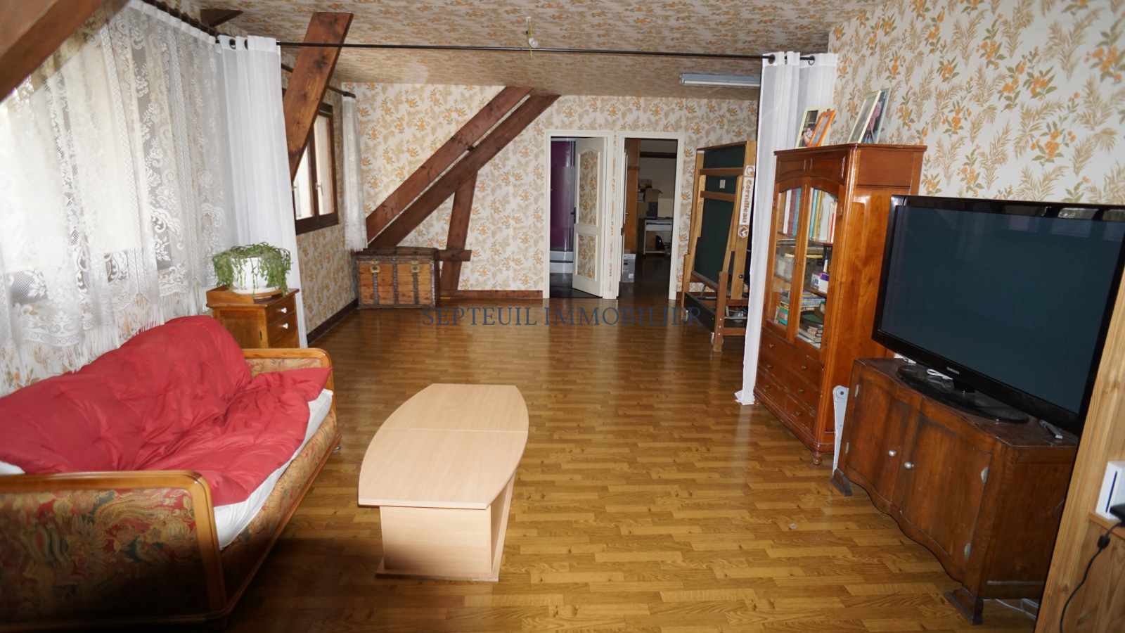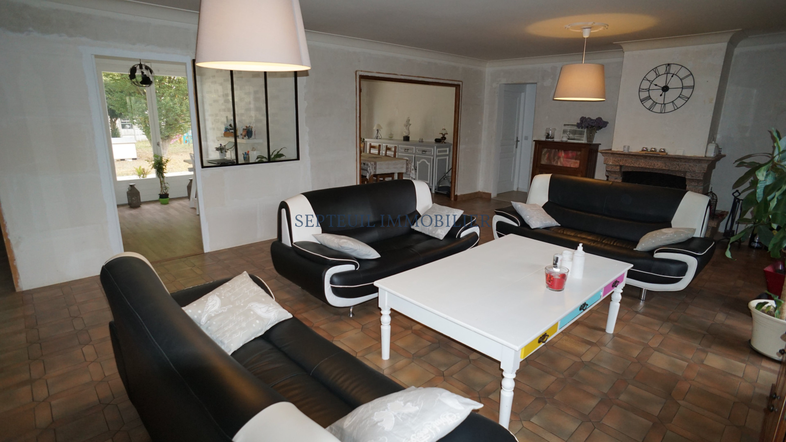 Séjour 53 m² avec cheminée, grande cuisine équipée, arrière cuisine, 2 chambres, bureau, dressing, salle de bains ( à terminer ) et wc.
