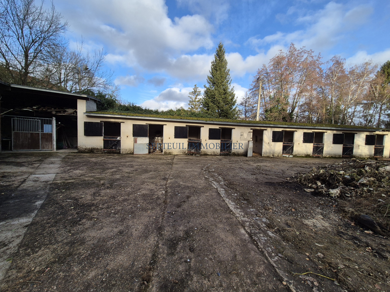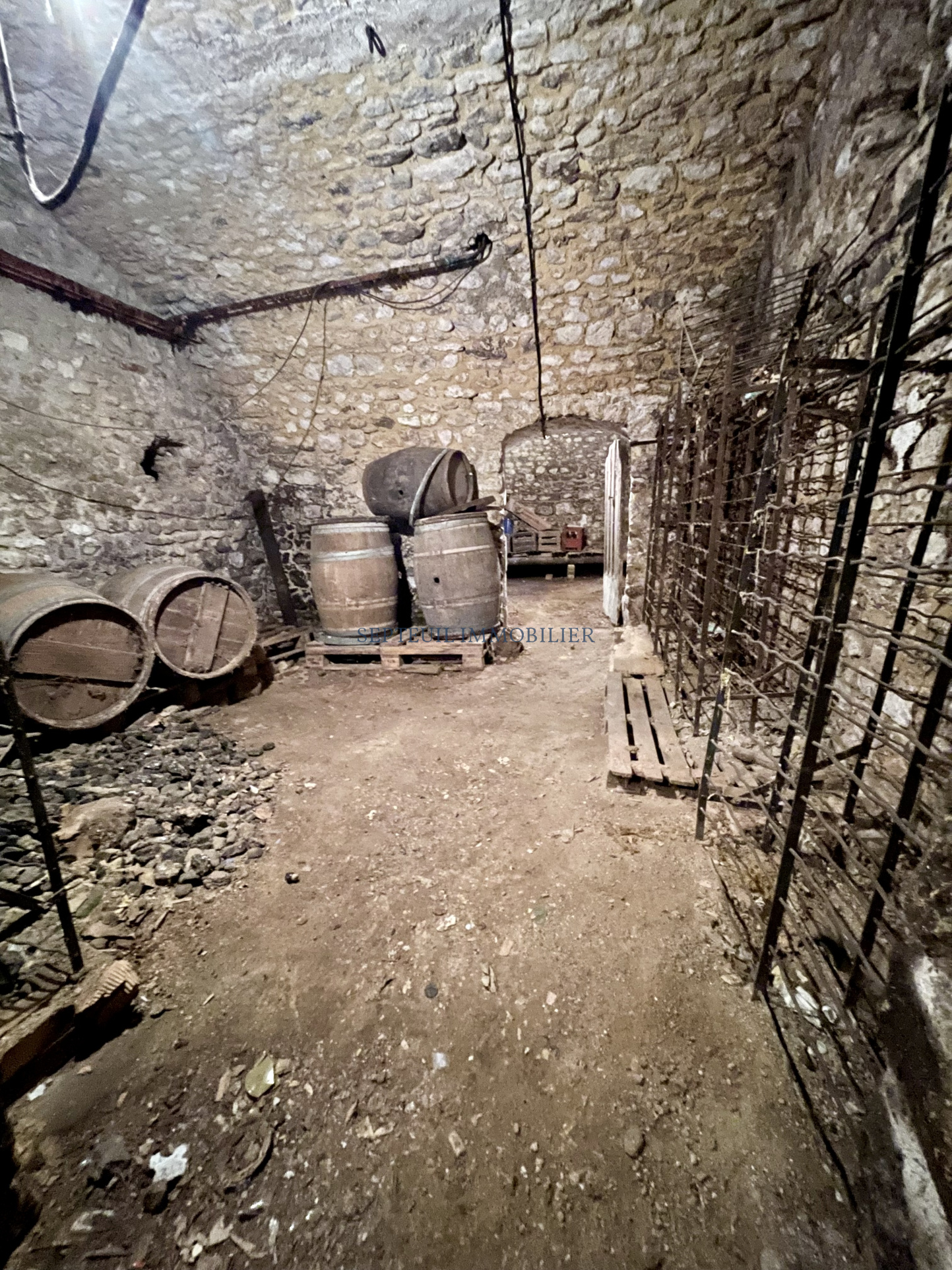 Nombreux garages, 3 grandes caves voutées, hangar, 15 boxes pour les chevaux, prairie, carrière et partie boisée.