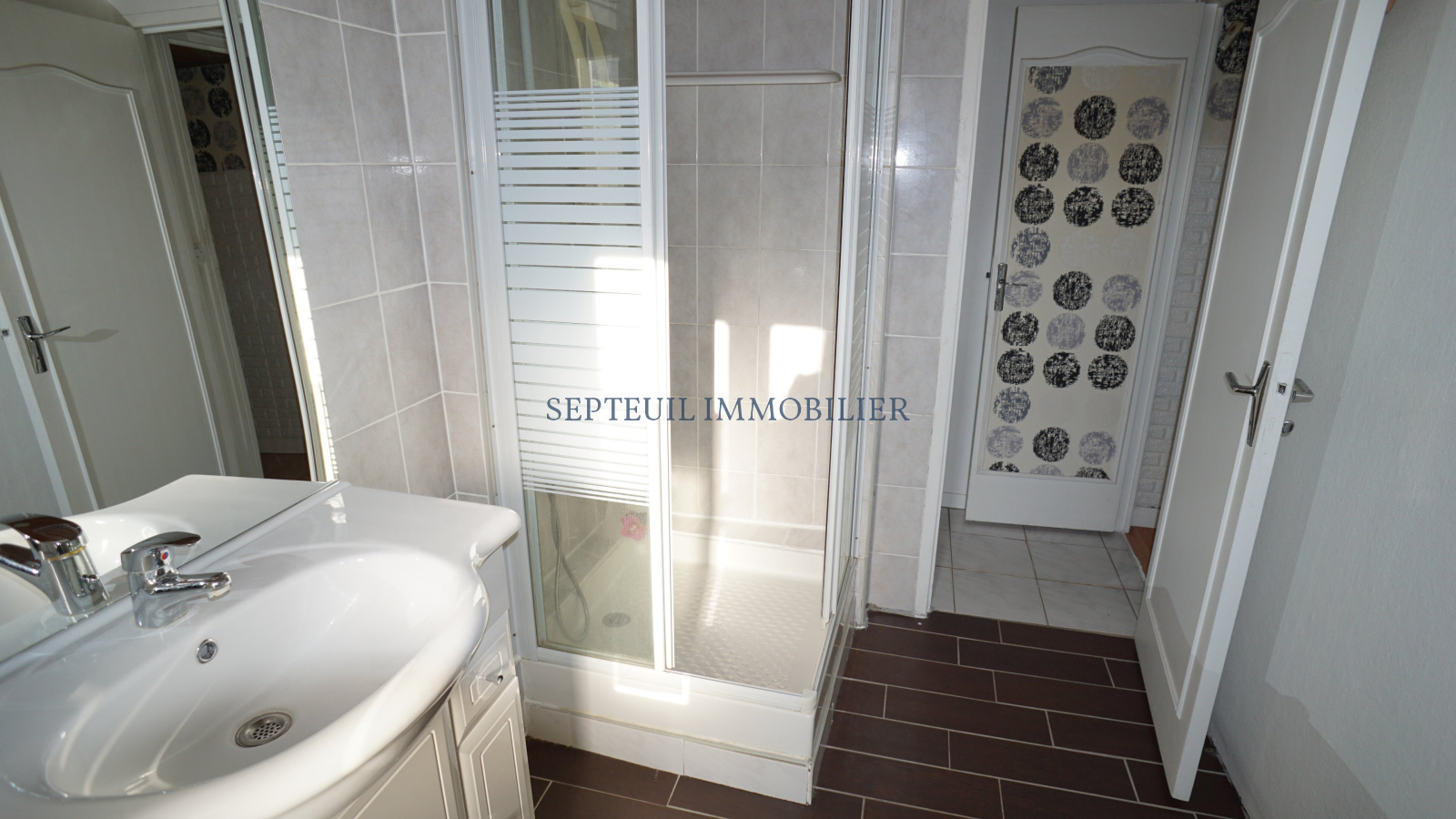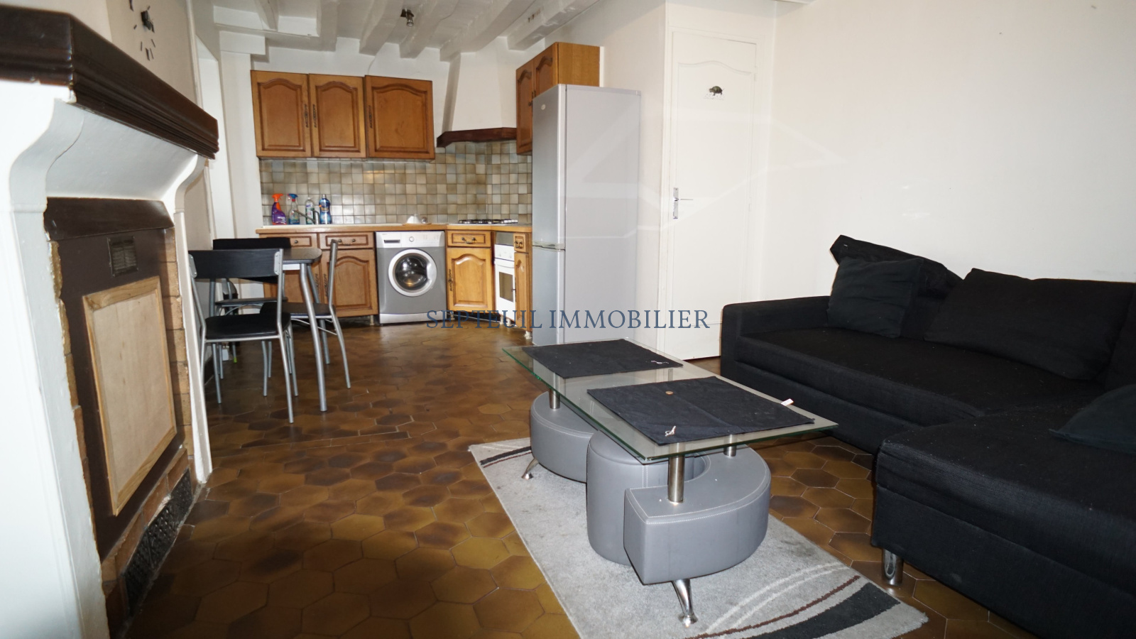 Séjour avec cuisine us aménagée, petit salon, 2 chambres, salle de douche et wc.