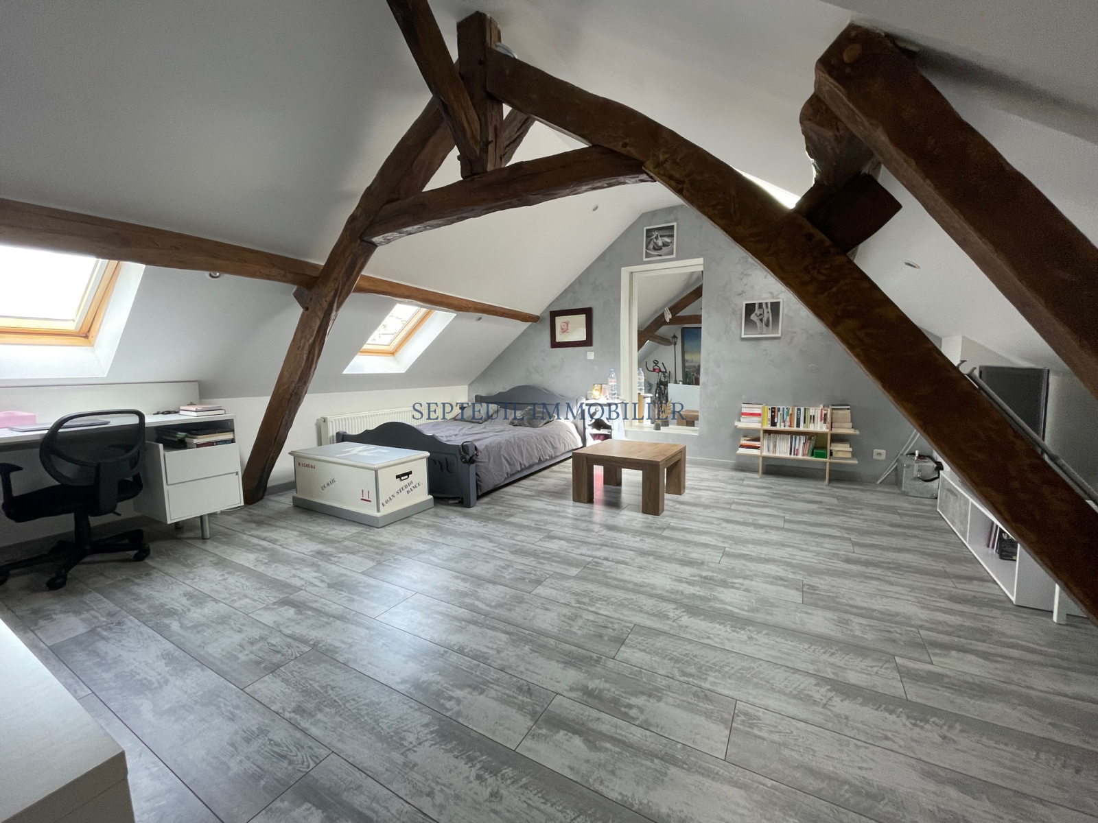 Au 2ème étage : une grande chambre mansardée avec son dressing attenant.