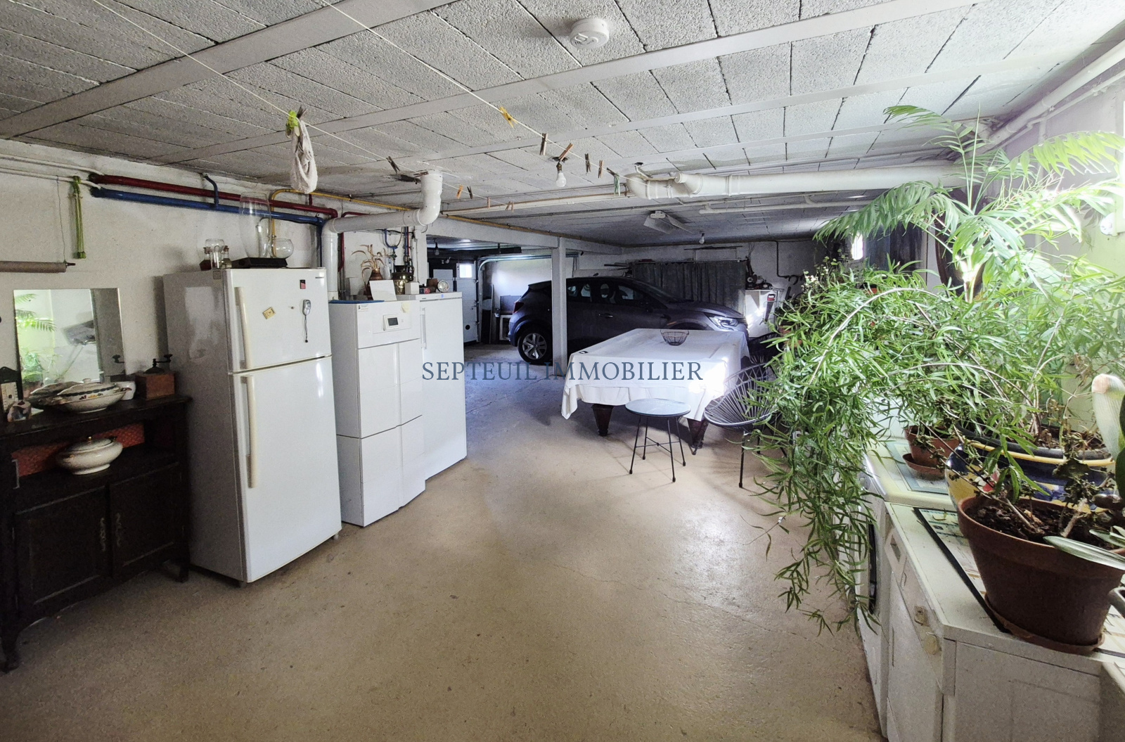 Sous-sol total avec garage 2 voitures (porte motorisée), grande pièce de stockage, espace buanderie, cave à vin, cellier.