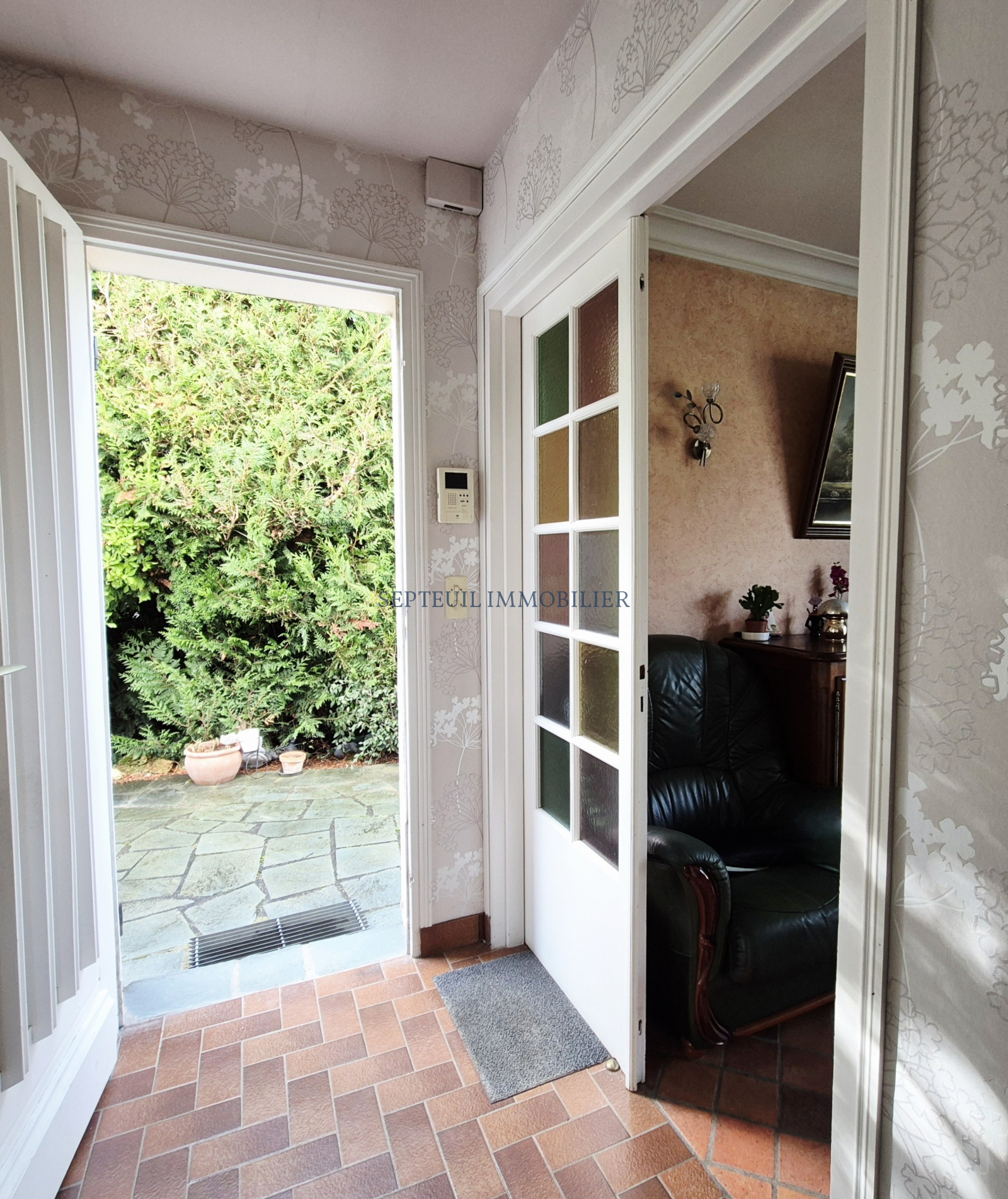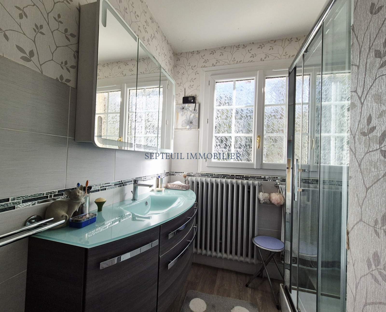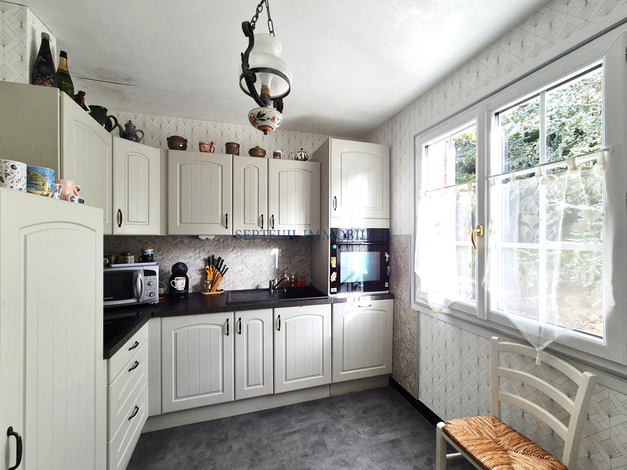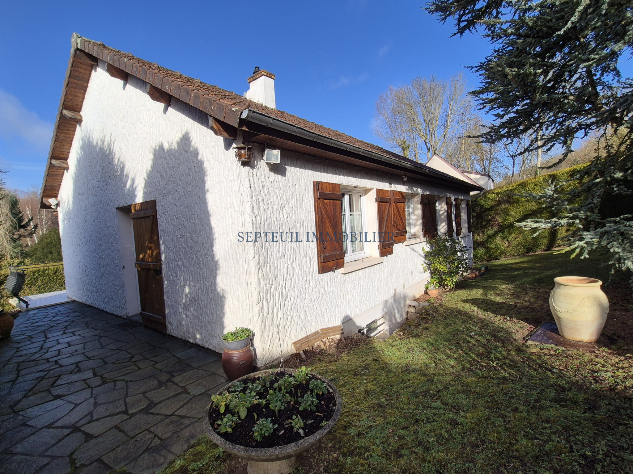 Septeuil, maison traditionnelle et fonctionnelle offrant de plain-pied, entrée avec penderie, séjour avec cheminée ouvrant sur terrasse bien exposée, cuisine séparée équipée, 3 chambres.