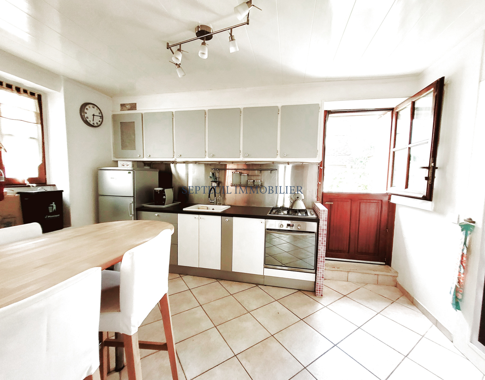 - Au rez-de-chaussée : entrée, séjour avec cheminée, cuisine dinatoire semi ouverte avec accès au jardin, cellier-buanderie, wc.