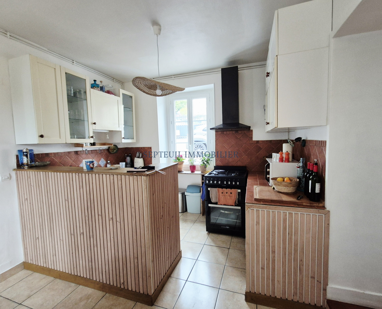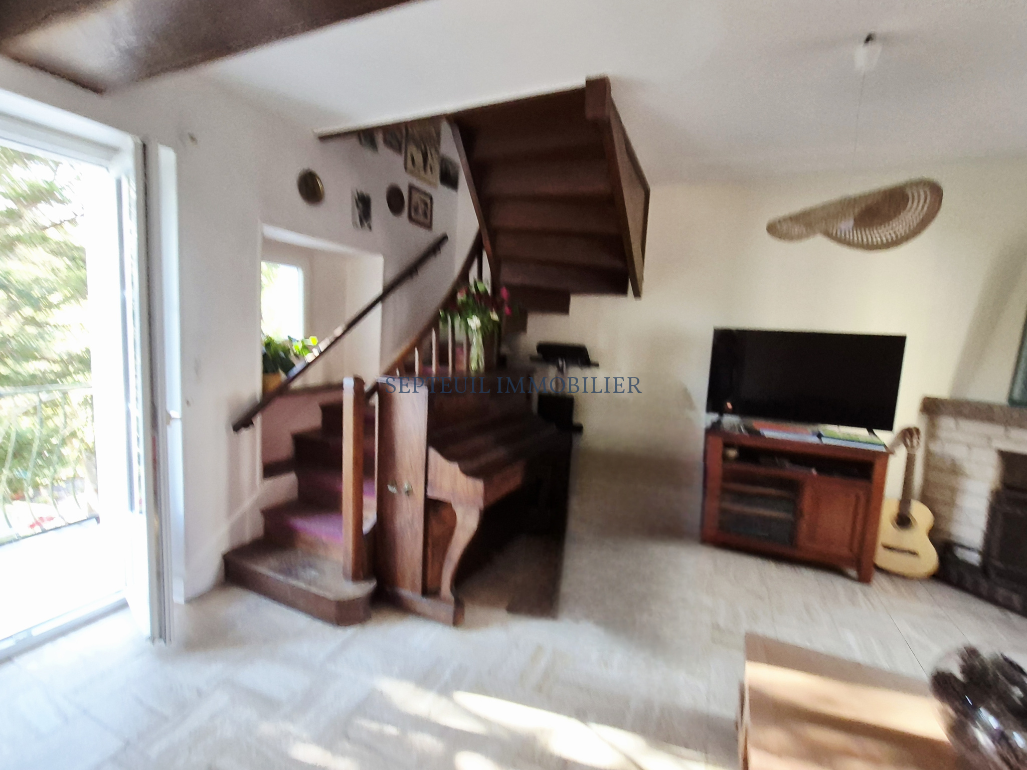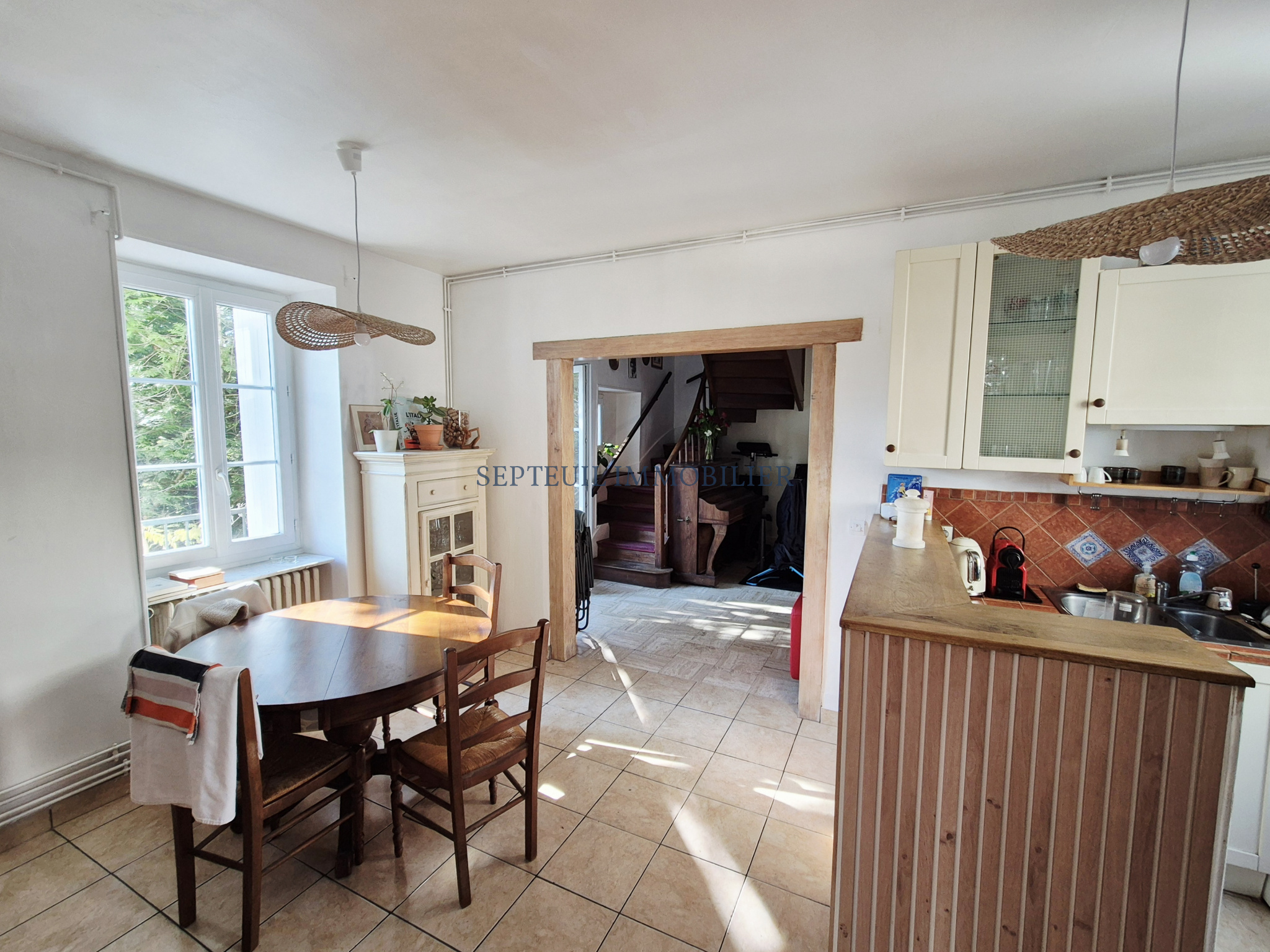 - Au rez-de-chaussée entrée avec rangements et accès terrasse, cuisine ouverte sur salle à manger, séjour avec cheminée, wc.