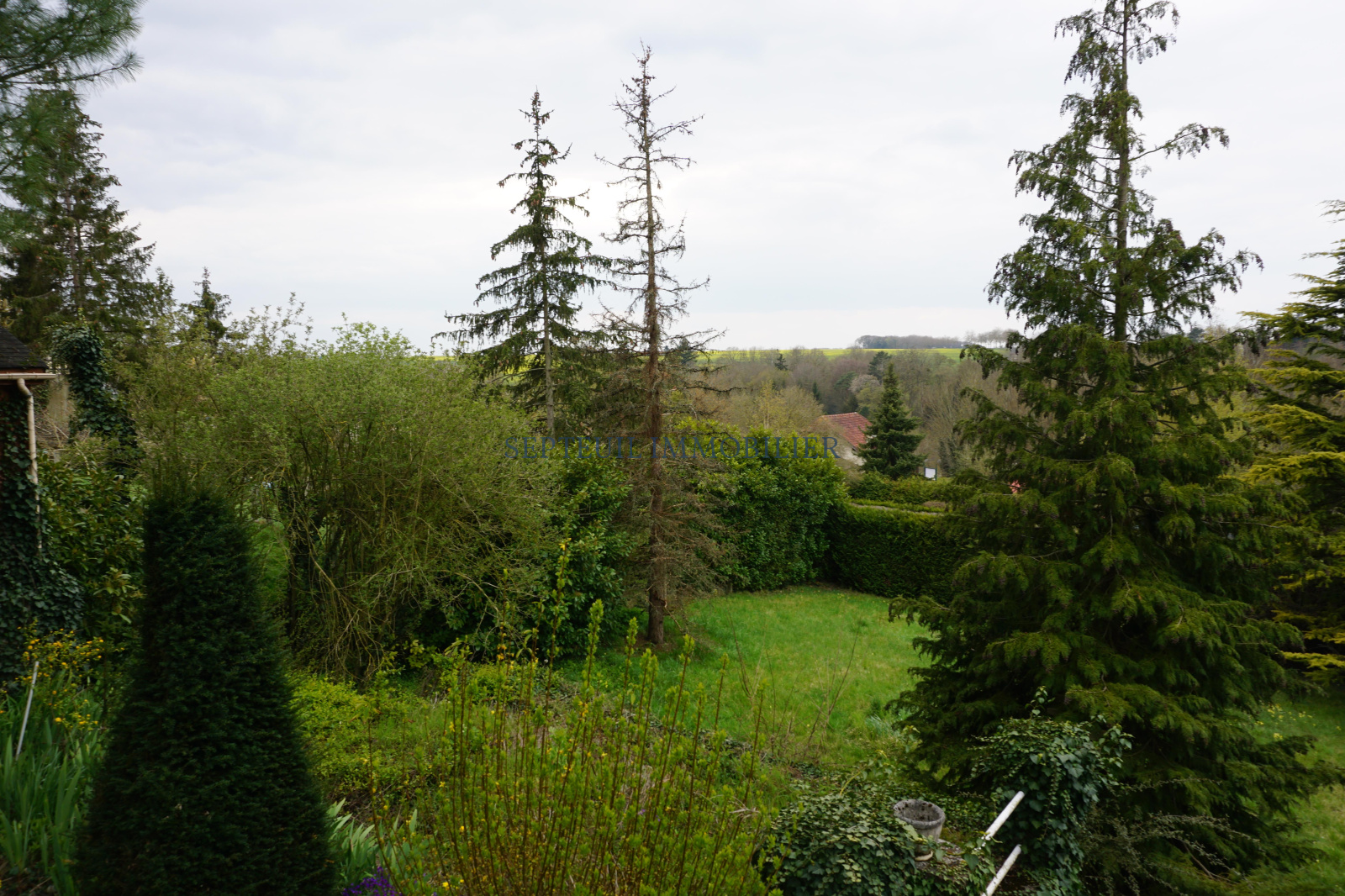 Entrée avec placards, séjour 53 m² avec cheminée et vue sur la vallée, cuisine aménagée, une chambre avec cabinet de toilette et wc.