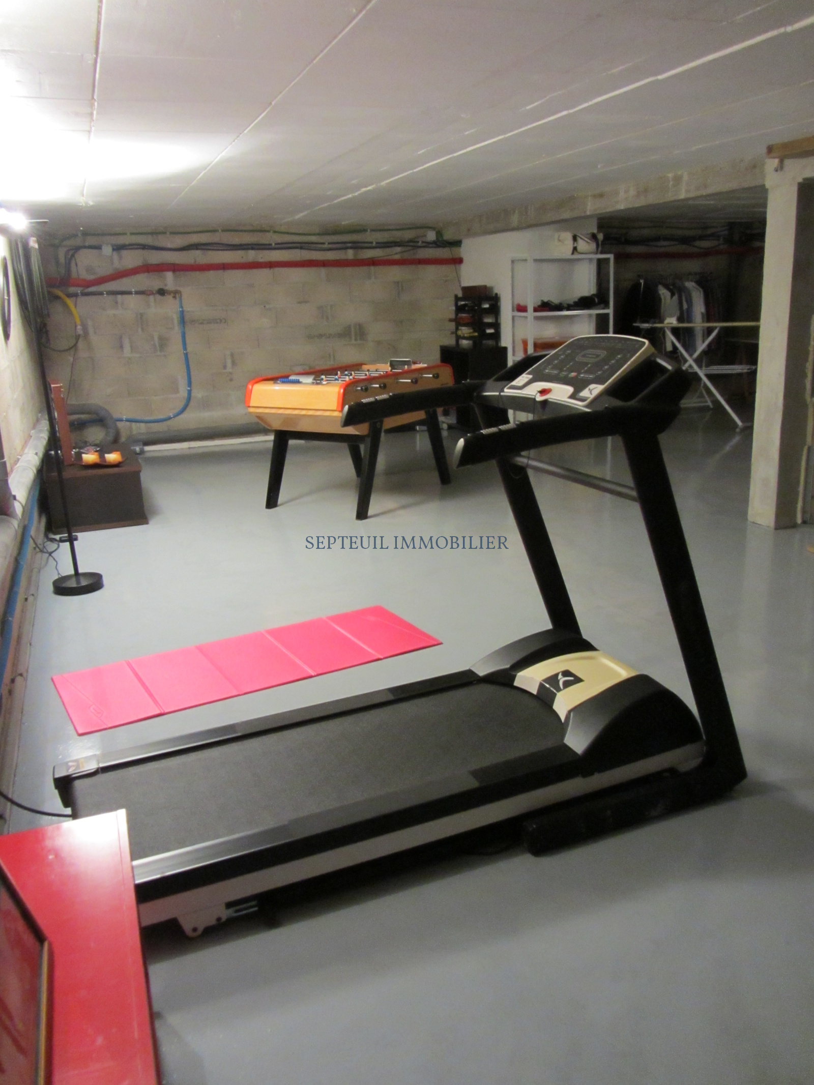 Sous-sol total avec buanderie et une salle de sport.