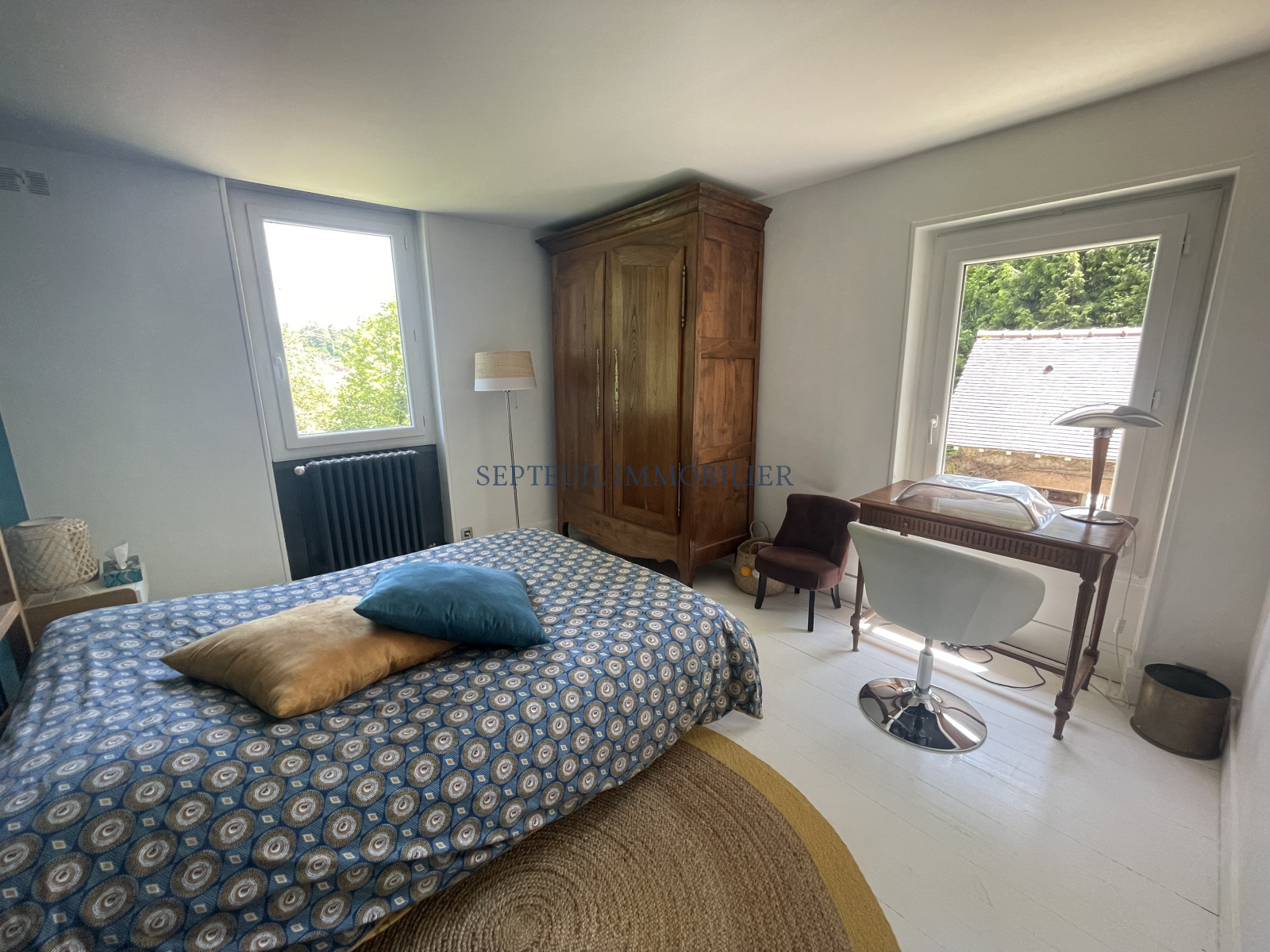 A l'étage palier, 3 chambres dont une avec cheminée de décoration, buanderie, salle de douche, wc.