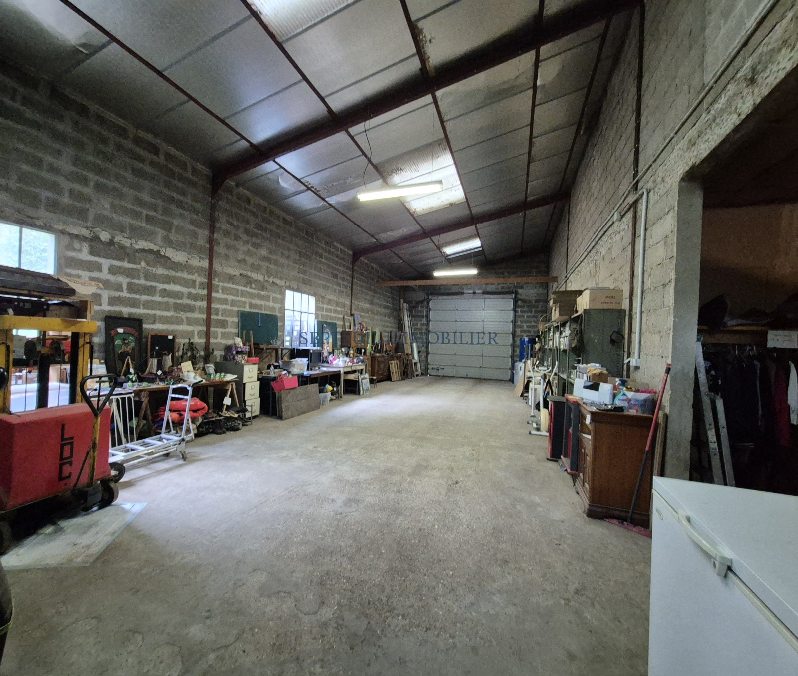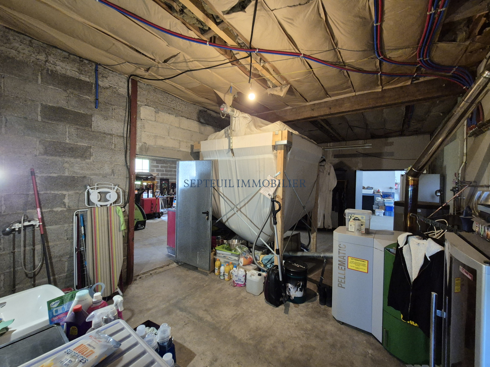 - Un entrepôt attenant sur 2 niveaux, composé au rez-de-chaussée d'une chaufferie-buanderie, 2 ateliers 100 m², 2 garages 240 m². A l'étage pièce de 110 m².