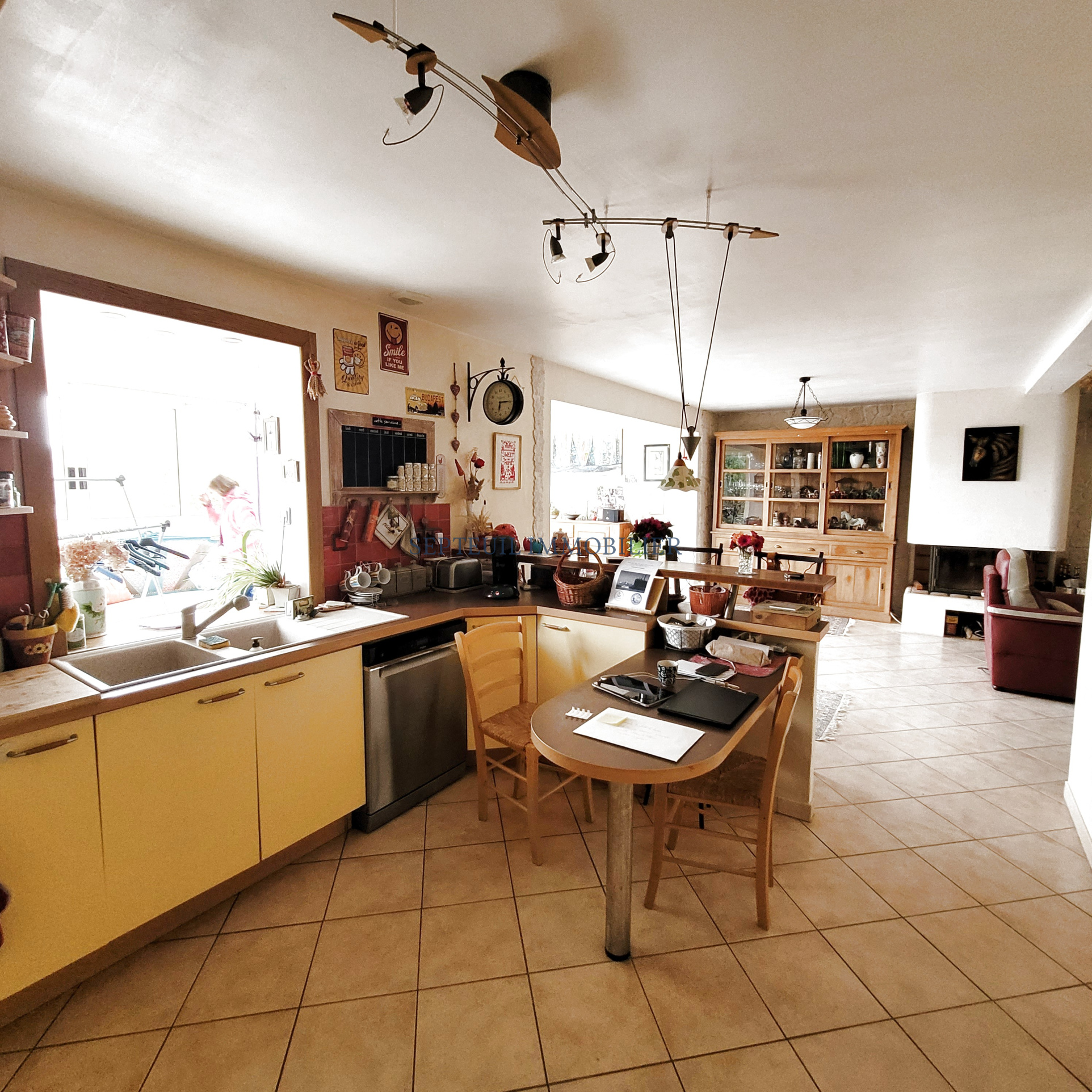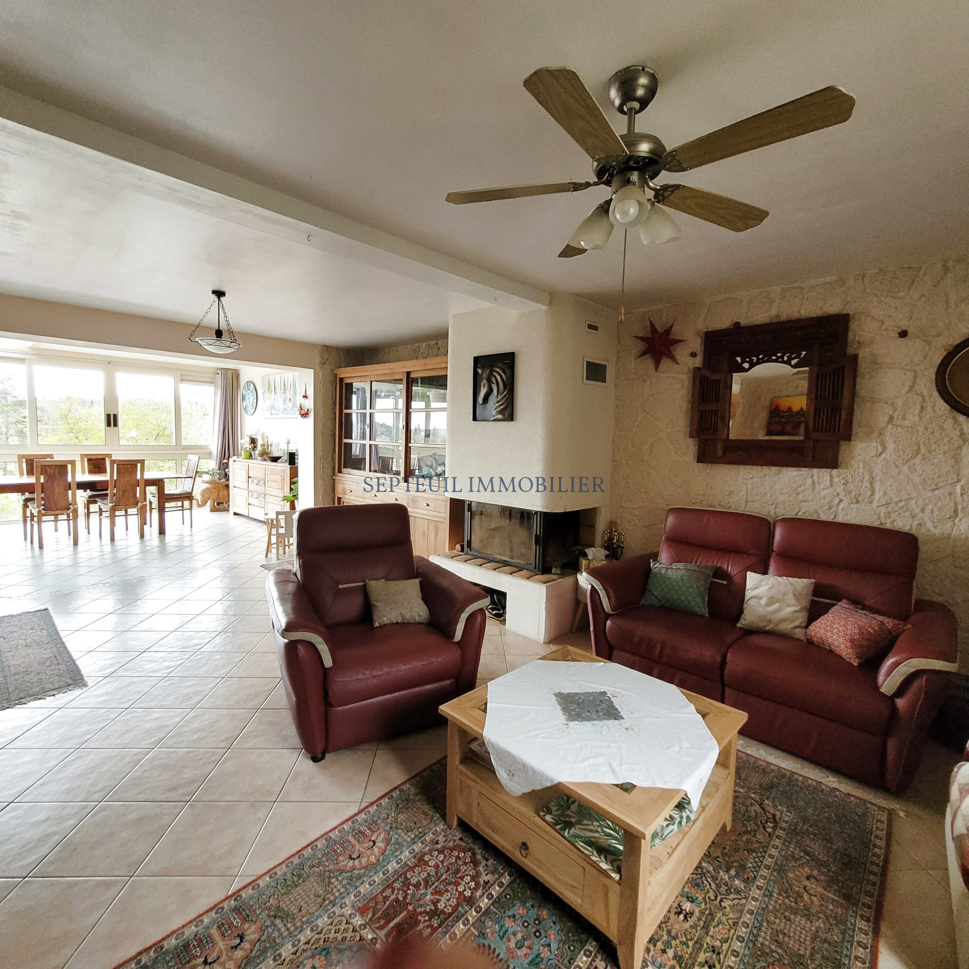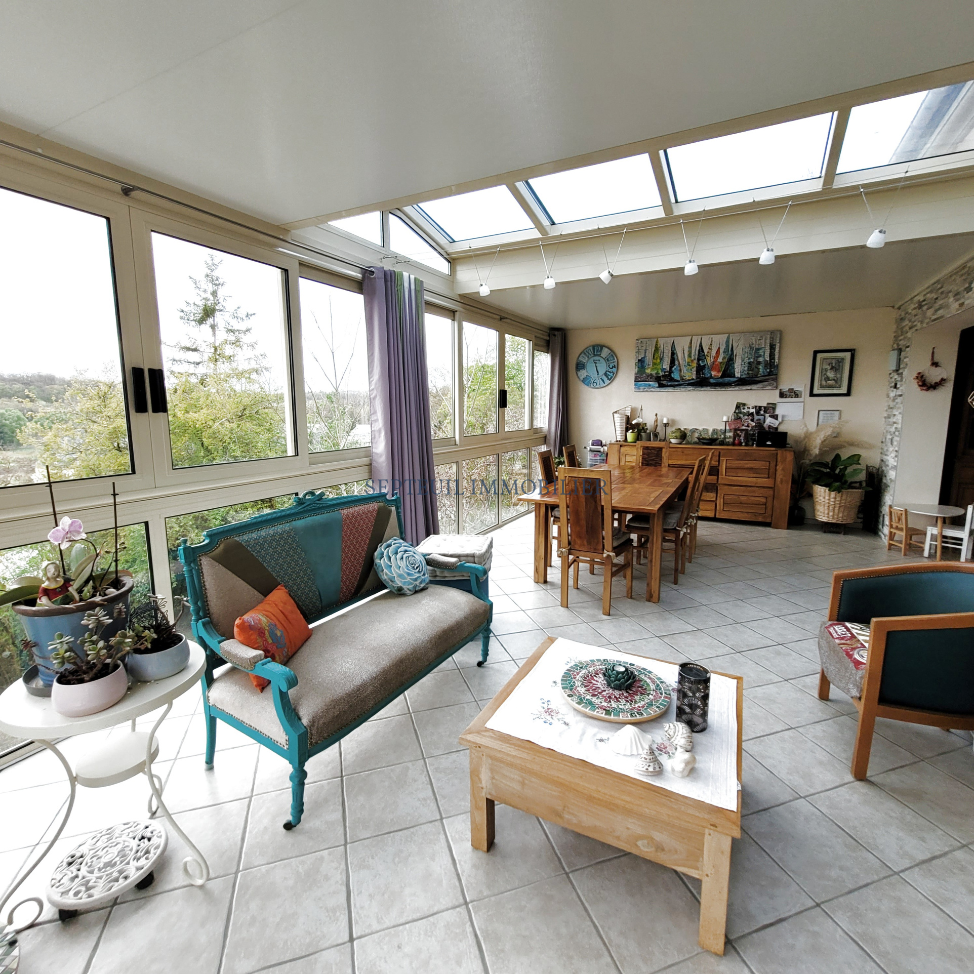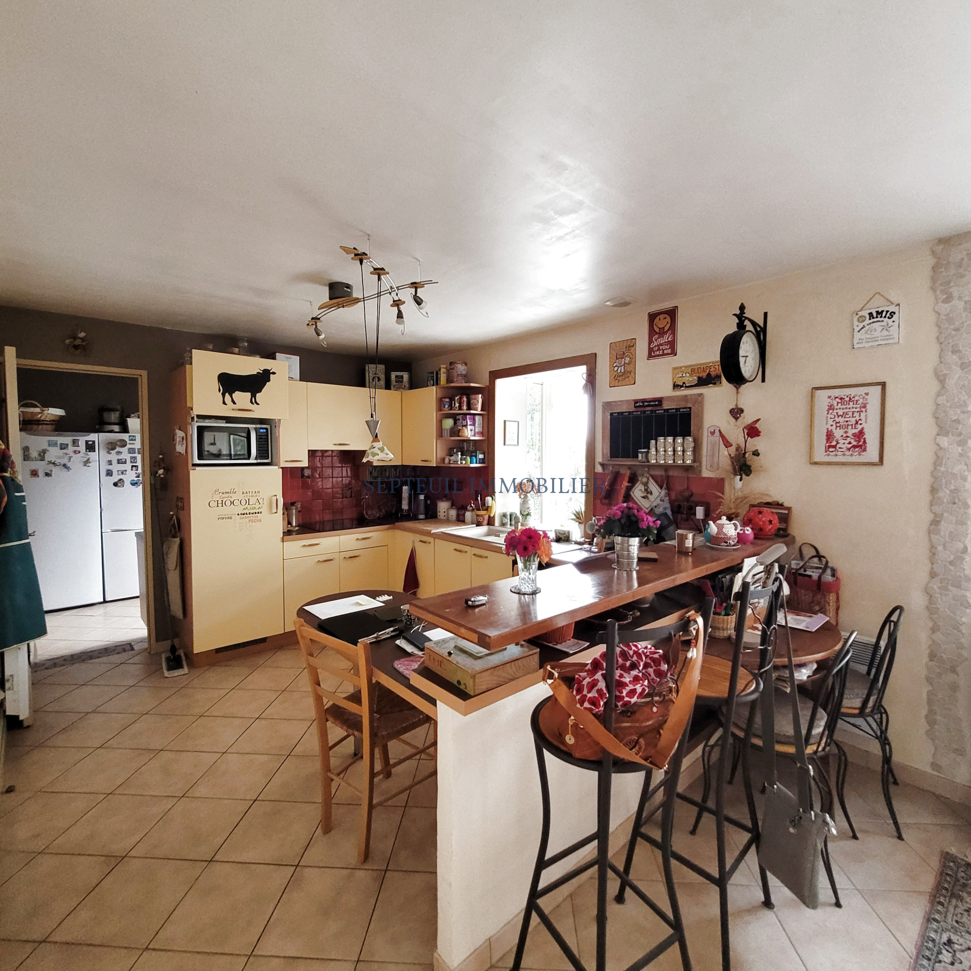 - Au rez-de-chaussée entrée avec rangements, séjour double avec cheminée, salon sous véranda avec vue panoramique sur le village, cuisine US équipée, cellier avec espace buanderie, palier/dressing, wc.