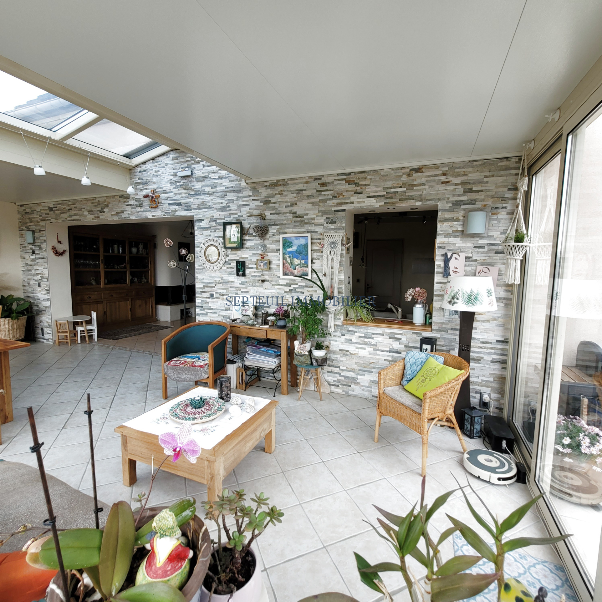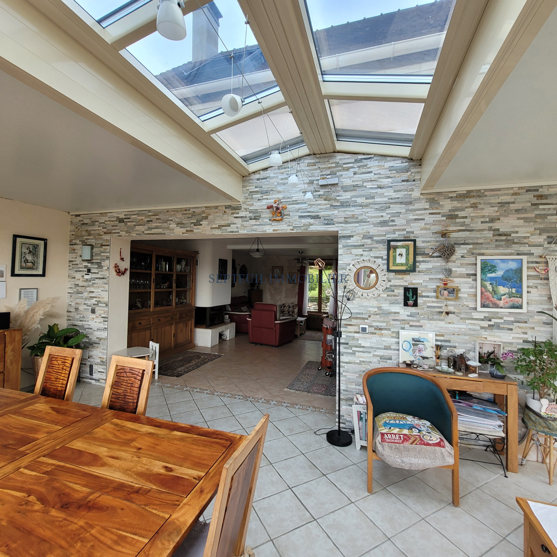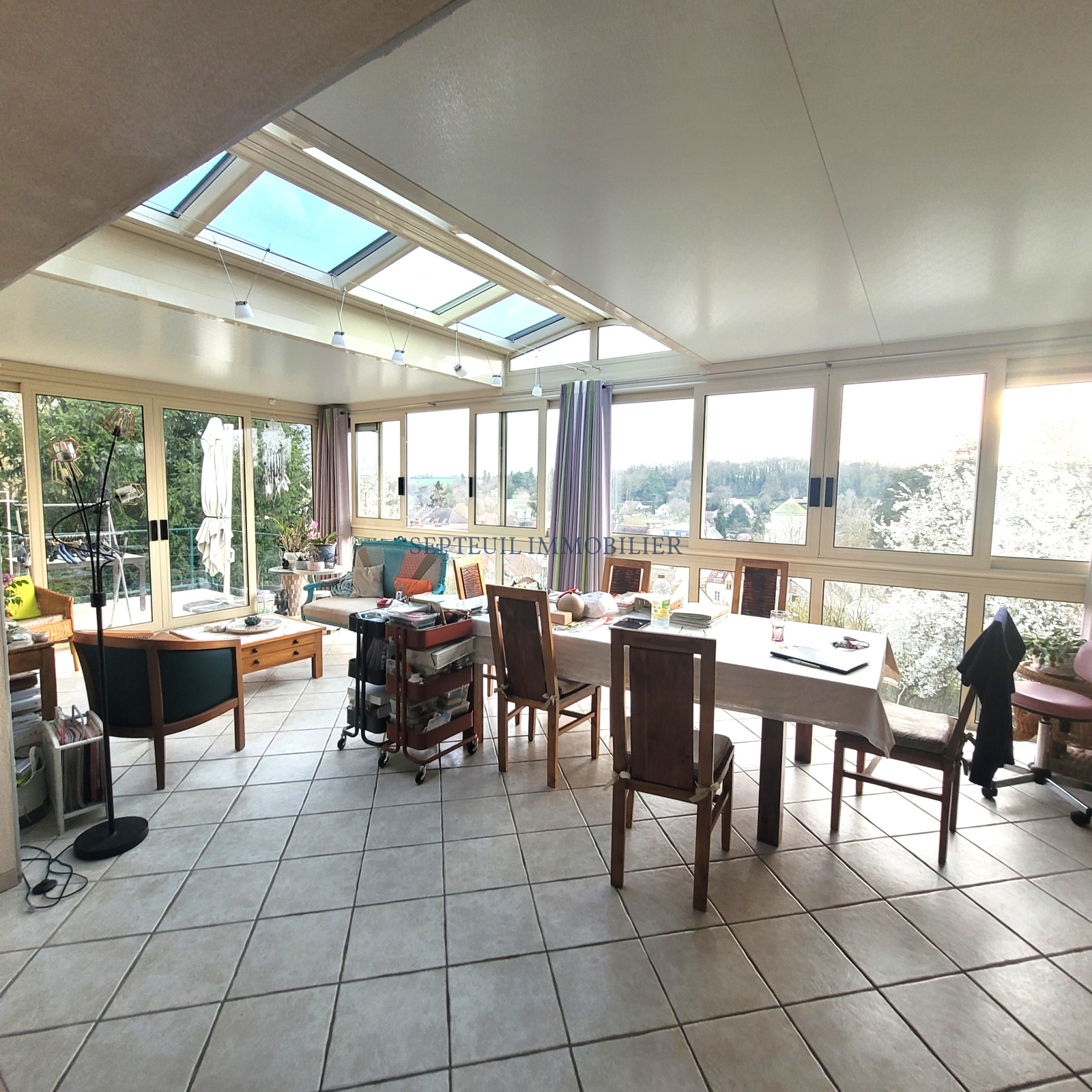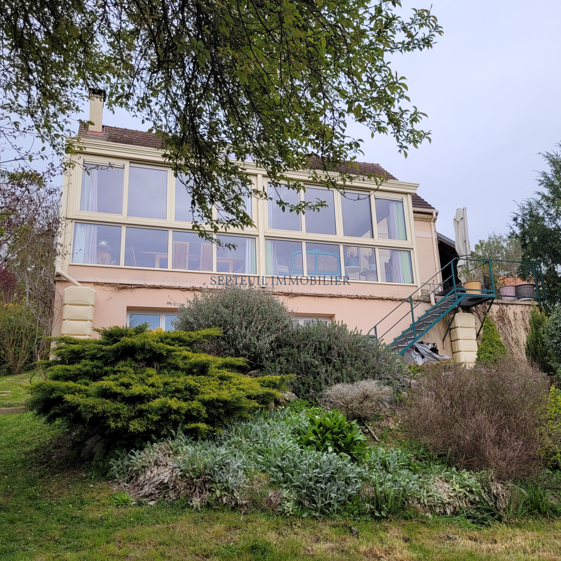 - Au rez-de-chaussée entrée avec rangements, séjour double avec cheminée, salon sous véranda avec vue panoramique sur le village, cuisine US équipée, cellier avec espace buanderie, palier/dressing, wc.