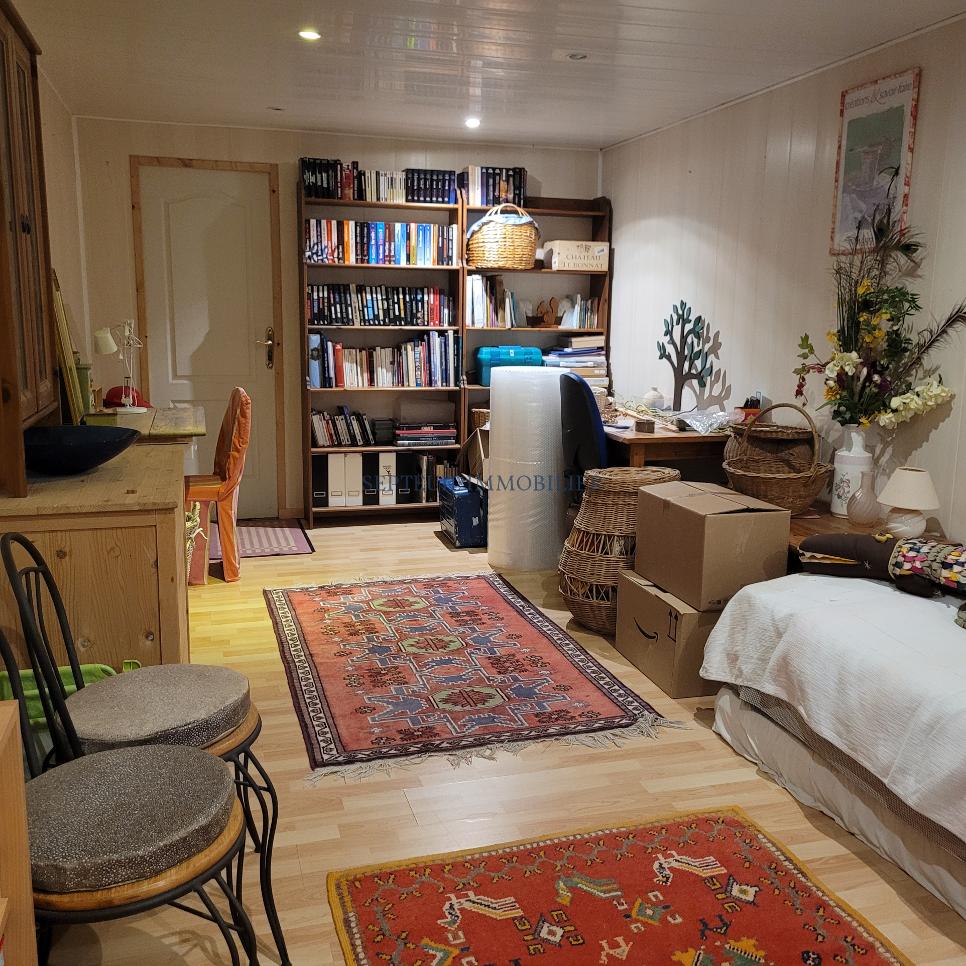 Au sous-sol, pièces de rangements, grande pièce avec jacuzzi, sauna, douche-hammam, wc. Un bureau avec larges baies vitrées et accès indépendant au jardin.