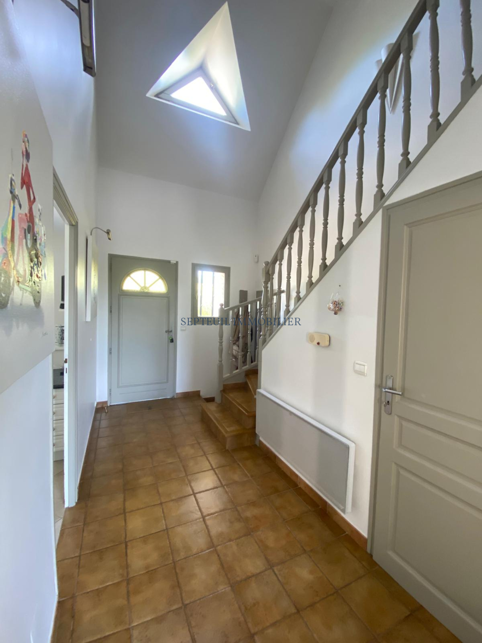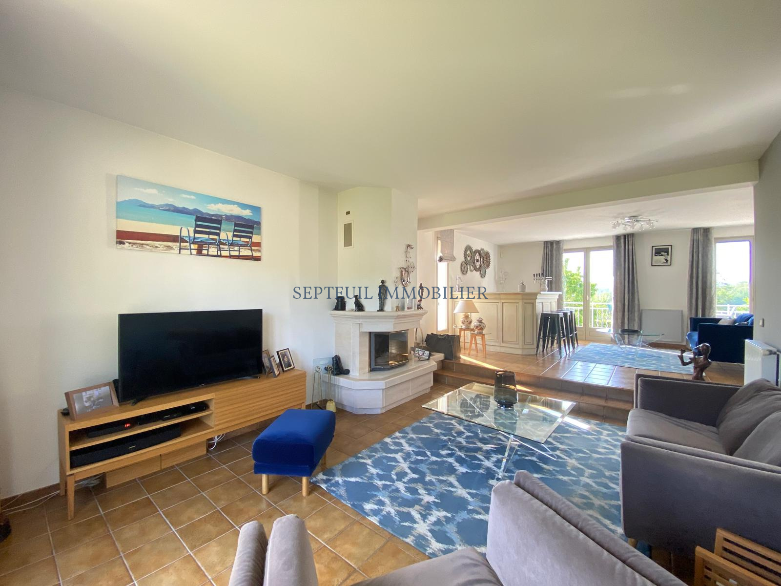 Au rez-de-chaussée : entrée, séjour double en L avec bar, cheminée et belle terrasse surplombant le village, grande cuisine dinatoire, aménagée et équipée, salle de douche et w indépendant.