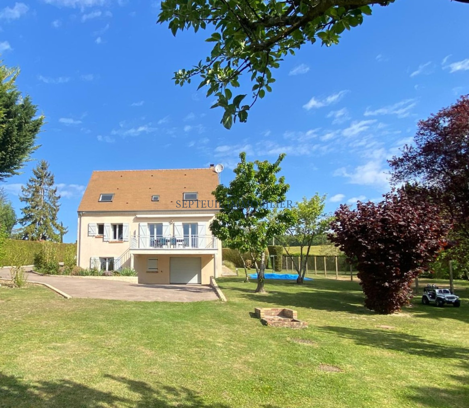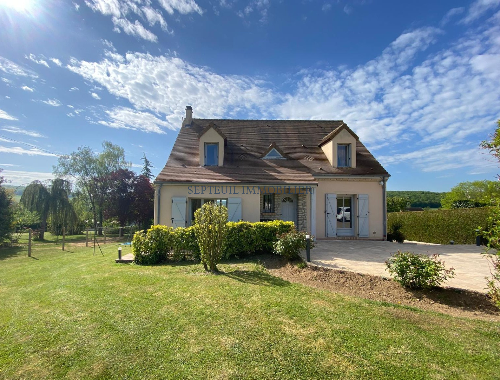 SEPTEUIL Près. Située dans le charmant village de Soindres, à 10 min en voiture de la gare SNCF (arrivée prochaine du RER E), proche des écoles et de l'accès A13, venez découvrir cette très agréable maison individuelle de 170m² Carrez, à la décoration soignée et en parfait état d'entretien.