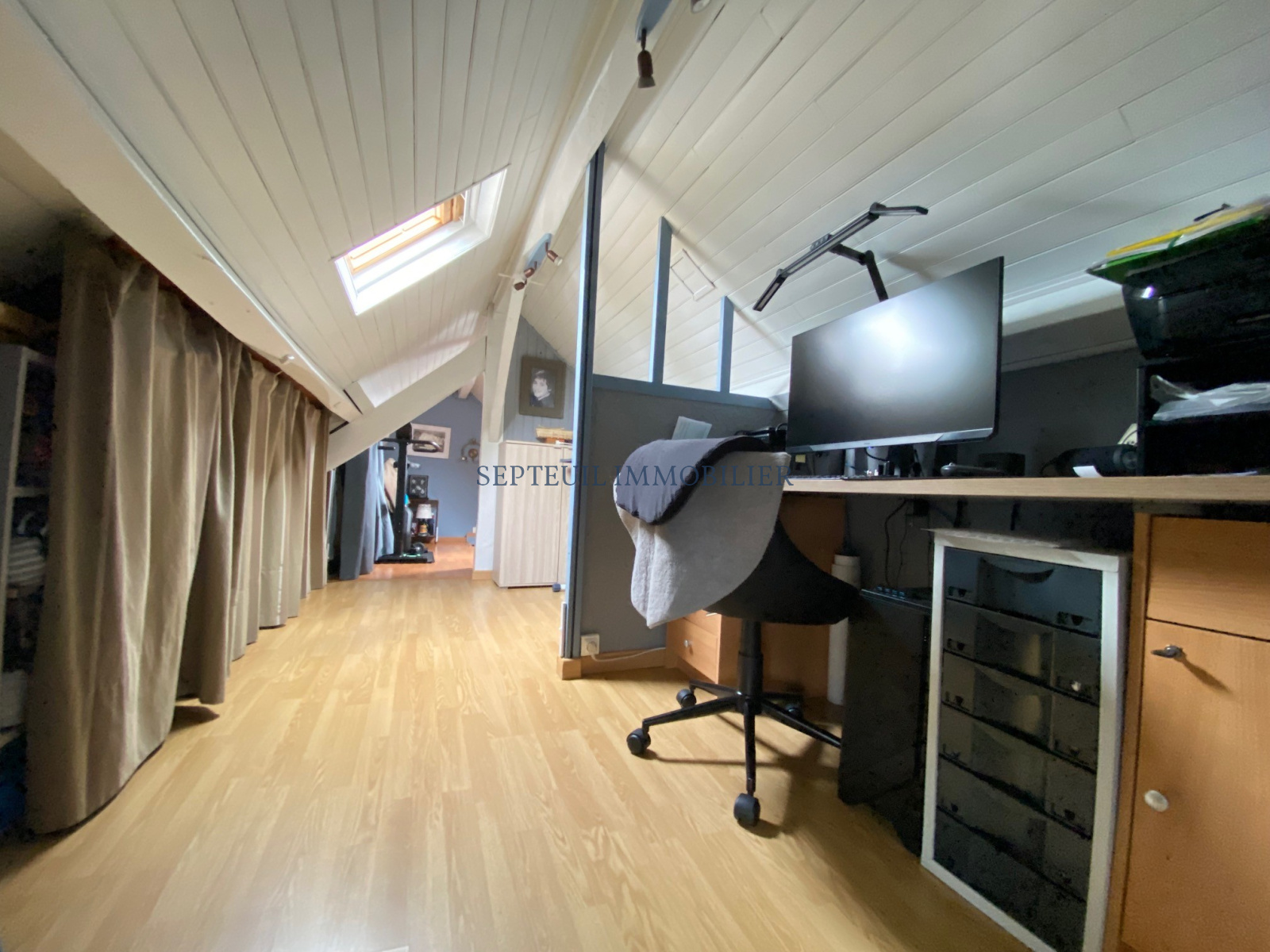 A l’étage, un espace nuit ou bureau, ainsi qu’une chambre parentale avec sa salle de bains et son wc complètent l’ensemble.
