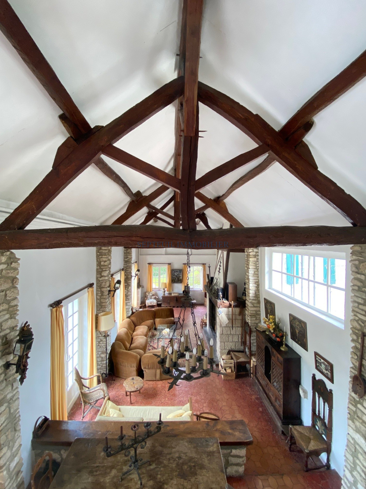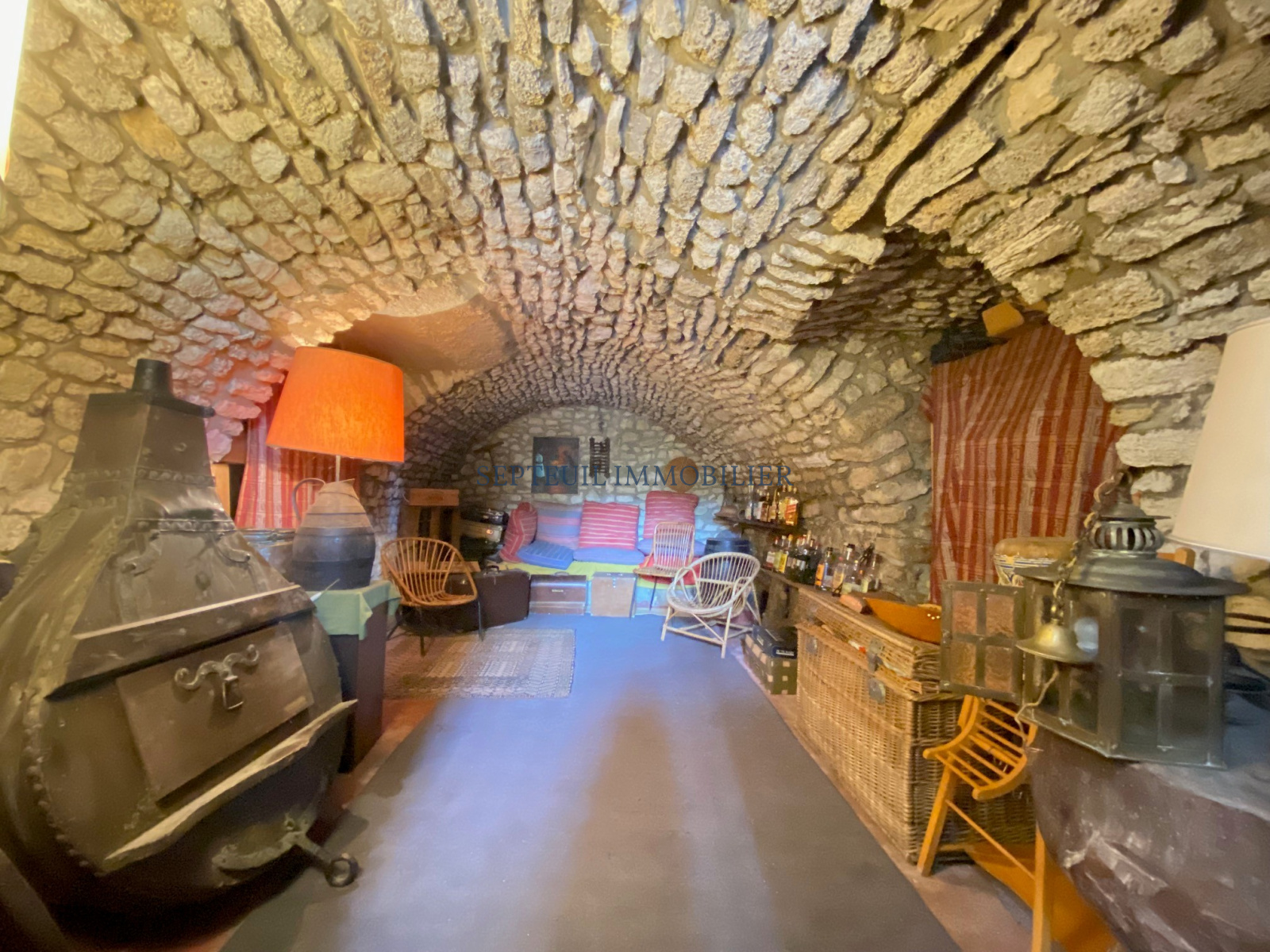 Rez-de-chaussée, un double séjour de 60m²avec plafond cathédrale et grande cheminée vous accueille. Tomettes et poutres conférent un charme authentique à cette pièce de vie lumineuse, ainsi que son petit salon voûté plus intimiste (ancienne cave). La visite se poursuit par une cuisine de plain-pied sur terrasse, d’une chambre avec rangements et cabinet de toilette.