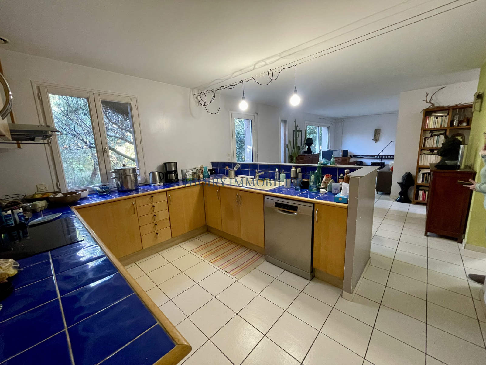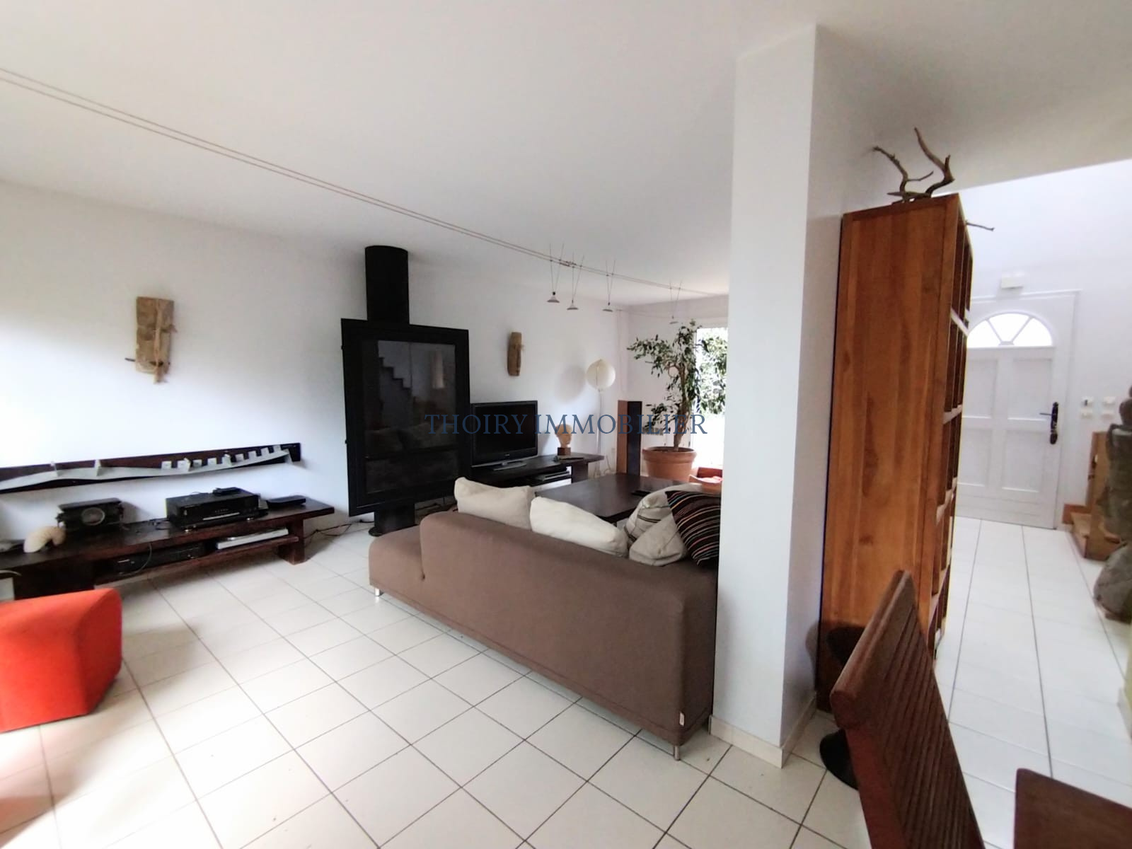 - Au rez-de-chaussée : Entrée sur séjour avec cheminée et cuisine US aménagée de 61 m² , cellier/buanderie, une chambre, wc avec lave-mains.