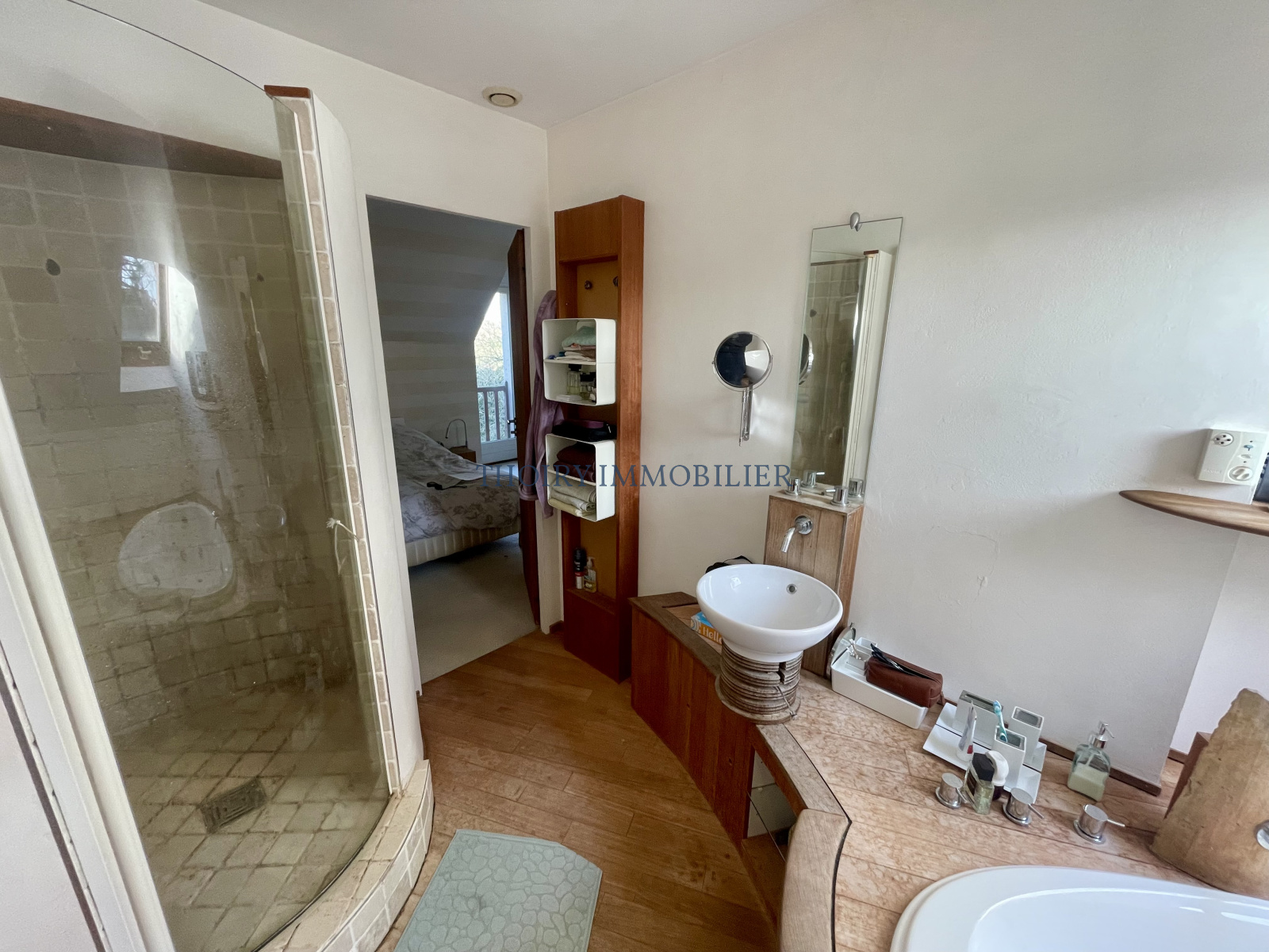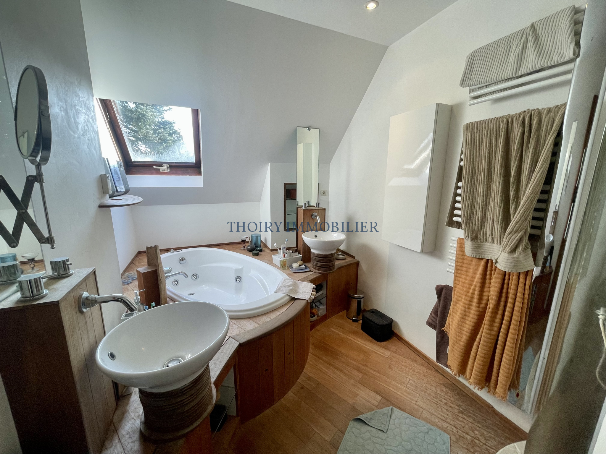 - A l'étage : palier desservant 3 chambres dont une suite parentale avec sa salle de bains avec douche et double vasques privative, salle de douche et wc.