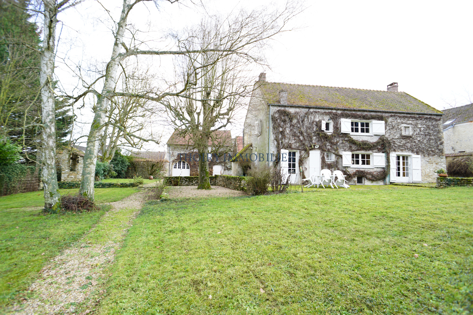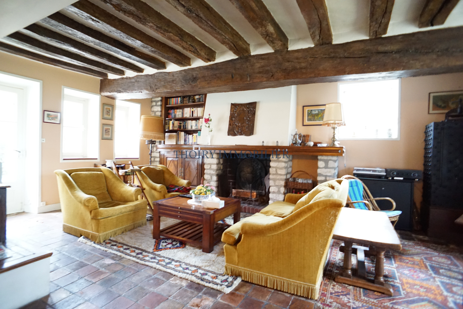 Au rez-de-chaussée : Entrée, toilettes, cuisine aménagée, séjour avec cheminée de 49 m².