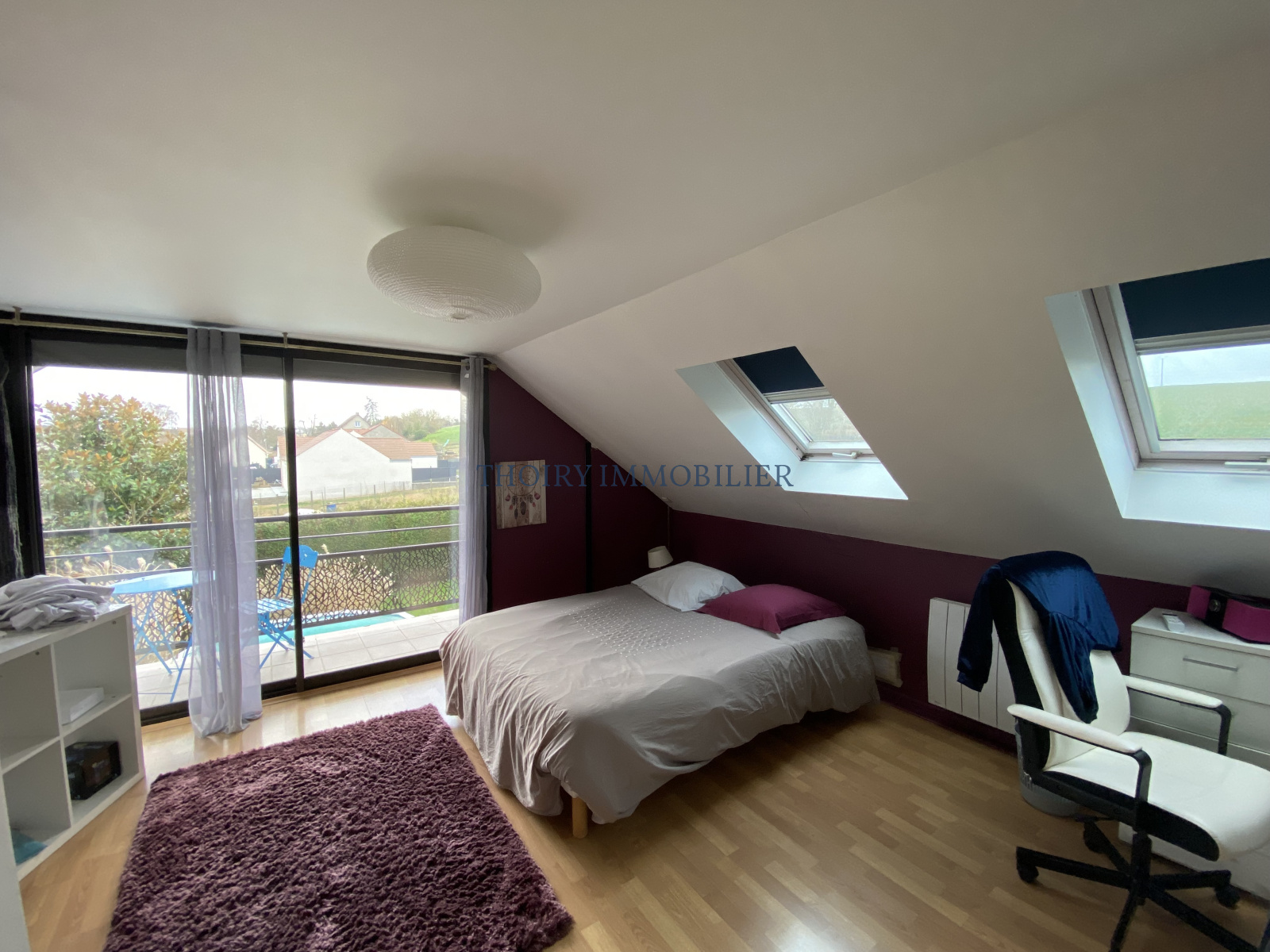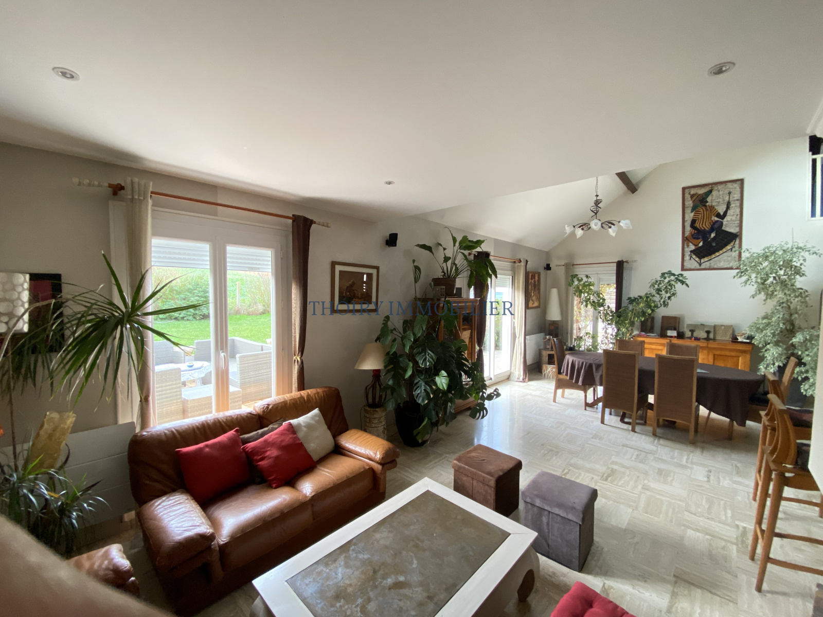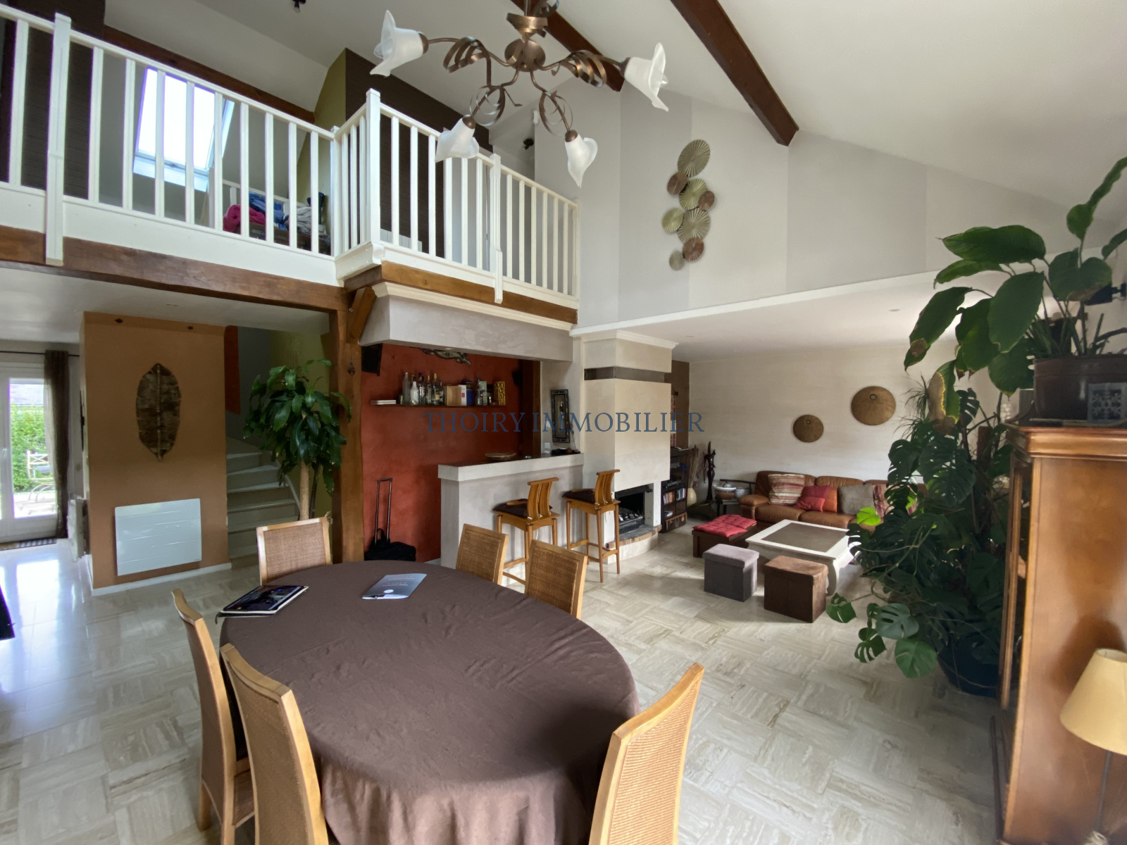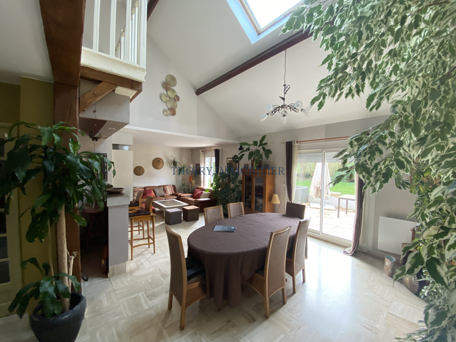 Maison traditionnelle comprenant au rez de chaussée: Entrée avec placards, séjour double + cheminée insert, cuisine u.s aménagée et équipée, salon/ bureau, dégagement avec placards, 3 chambres, salle de douche, wc séparé avec lave mains.