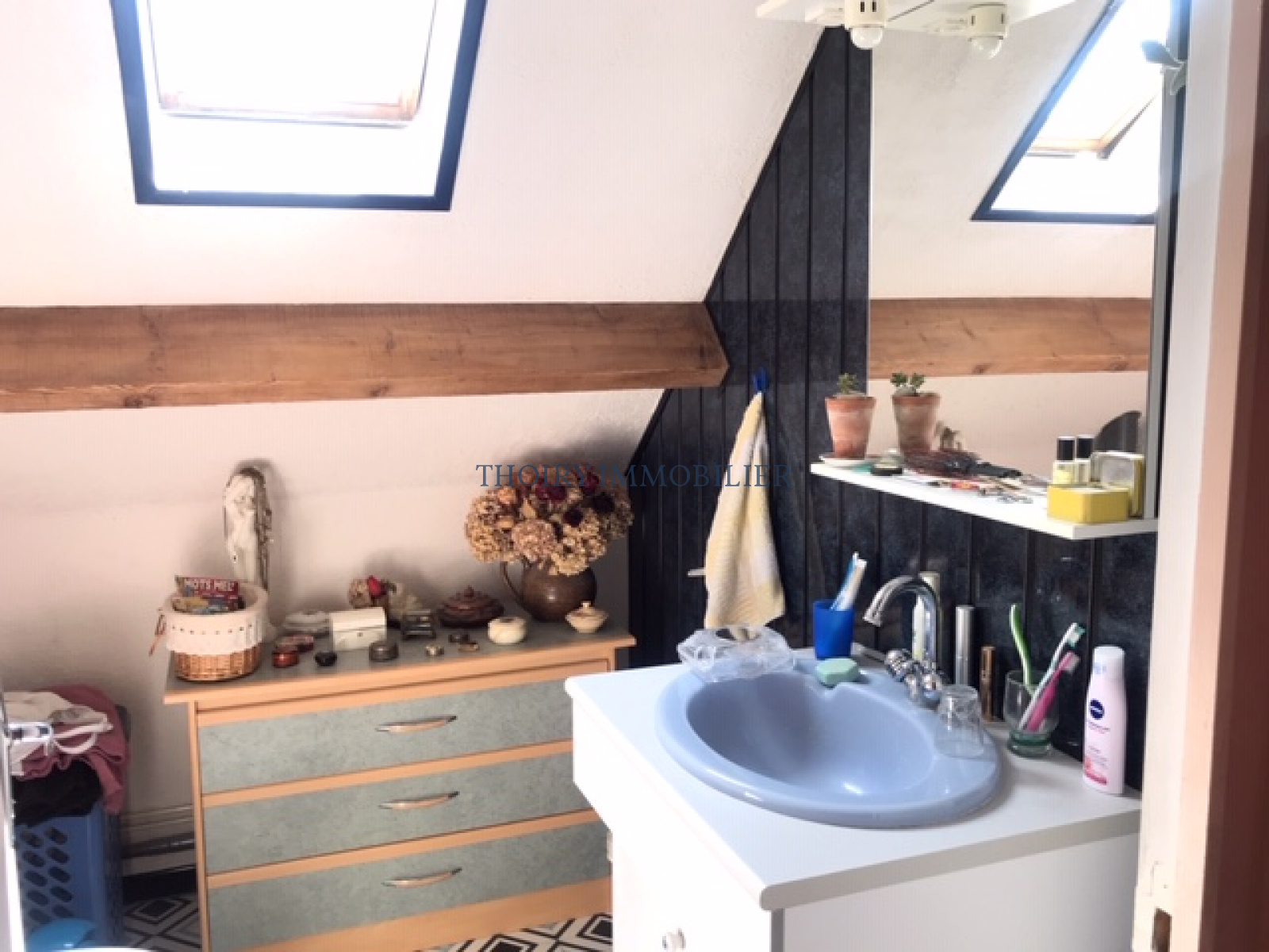 A l'étage : un palier desservant 2 chambres, un cabinet de toilettes et un grenier aménageable.