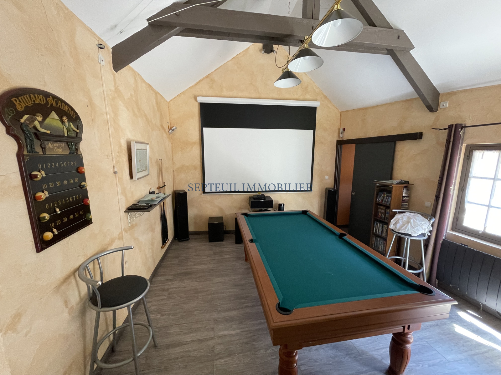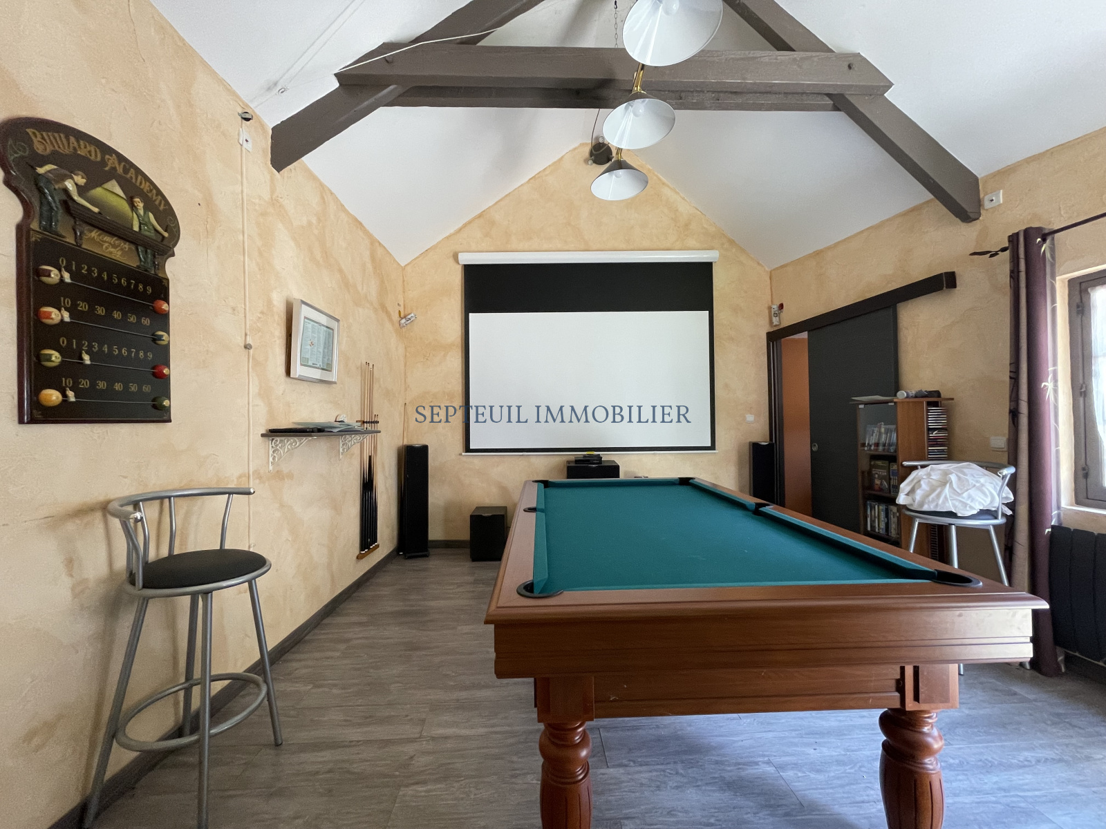 Une autre dépendance aménagée en salle de billard avec coin bar. Atelier.