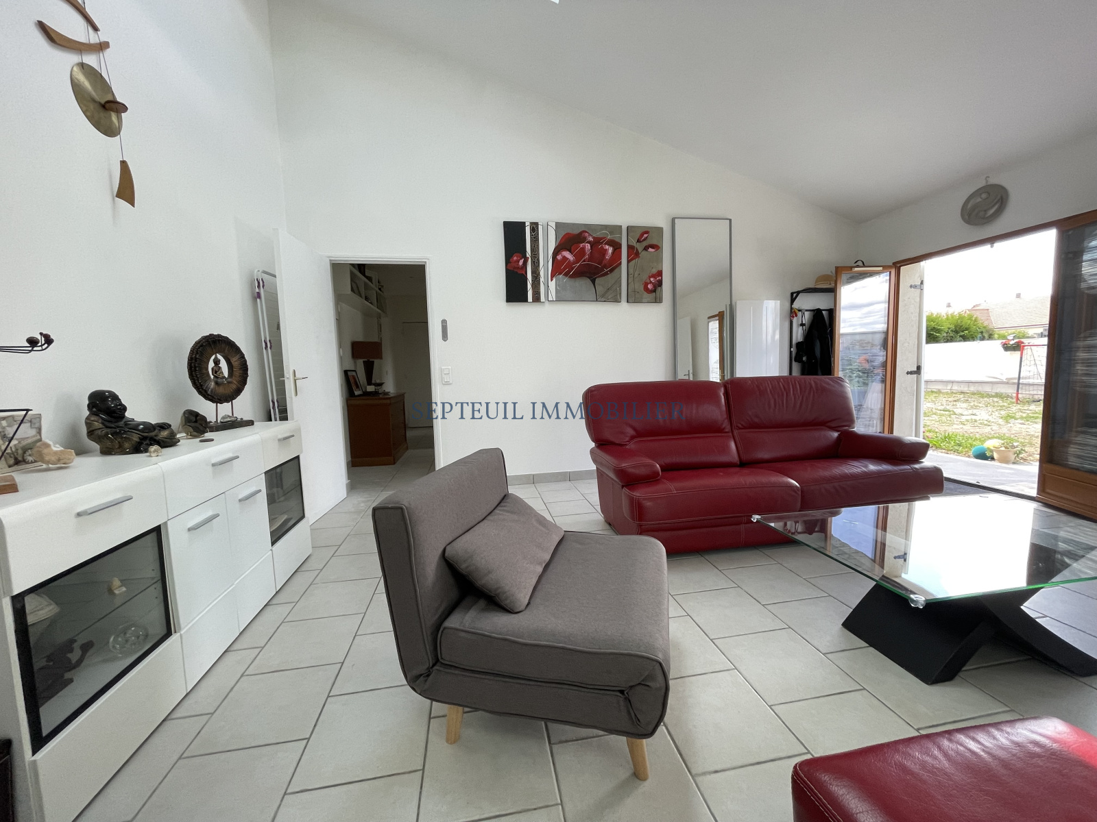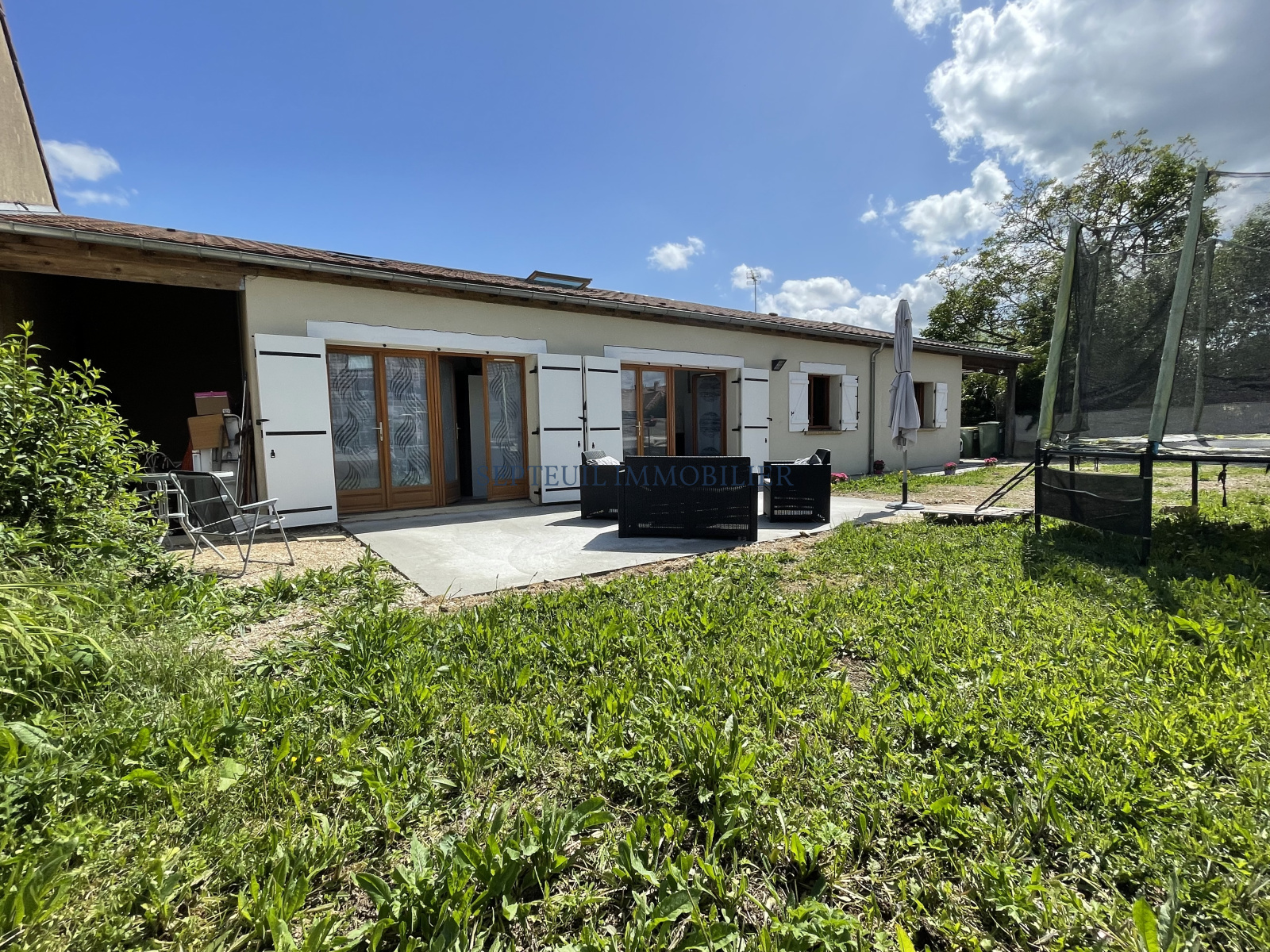 Jolie maison de plain-pied comprenant : Séjour avec belle hauteur sous plafond, cuisine équipée 14 m², 3 chambres dont une avec possibilité de mezzanine et salle de douche avec wc.